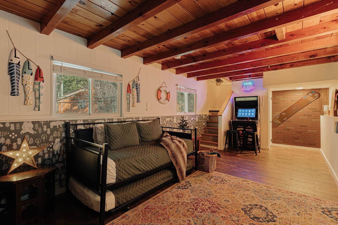 You’ll love spending time in this charming tri-level cabin. This fully upgraded, almost century-old cabin resides on a convenient road in a historic neighborhood in the Southern California mountains. This one-of-a-kind cabin is fully furnished with modern accents. You’ll enjoy unwinding by the outdoor fire pit, listening to a record while preparing dinner, and relaxing (or working) in the private, detached “studio” out back. There’s no better time to getaway to the mountains so book today!