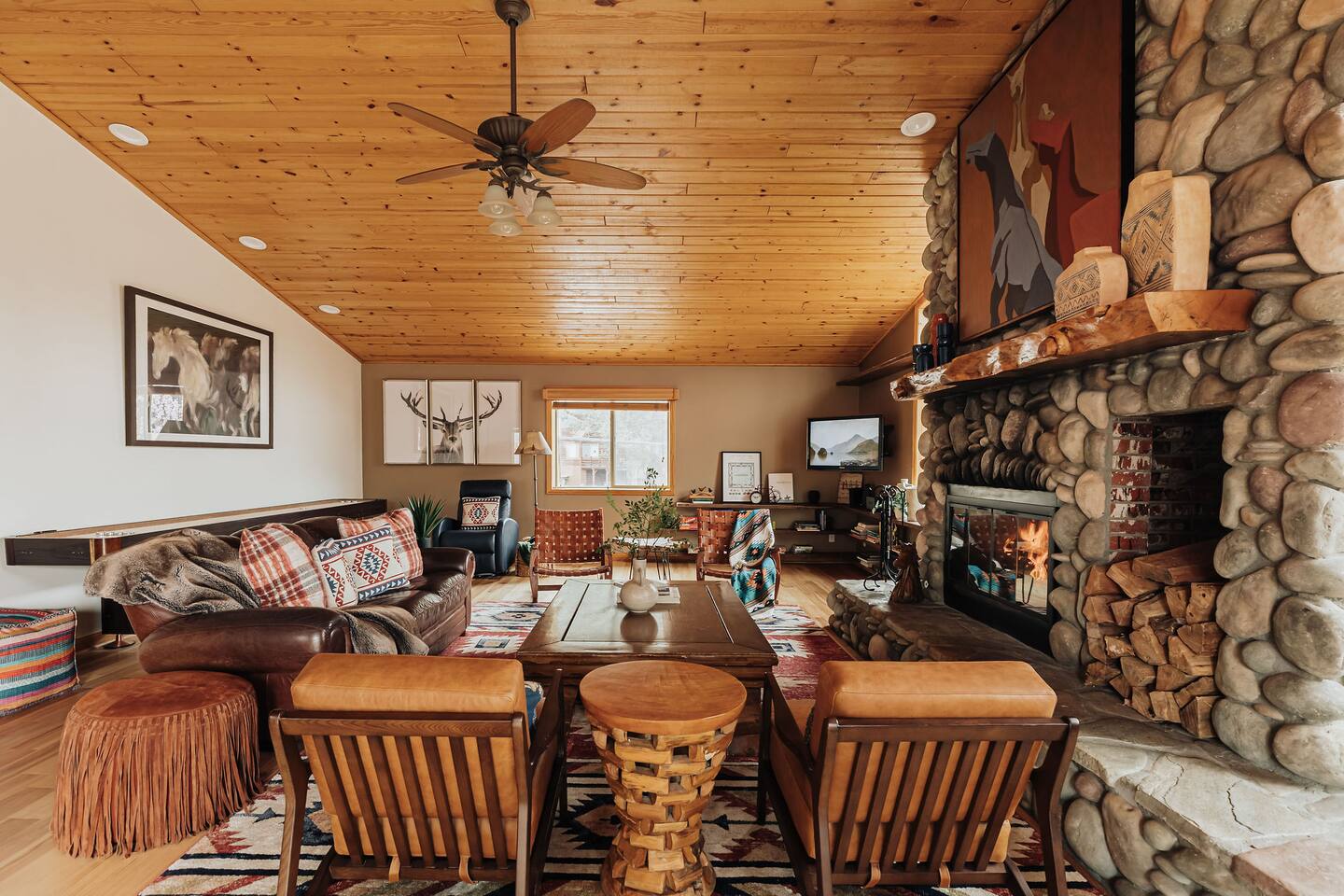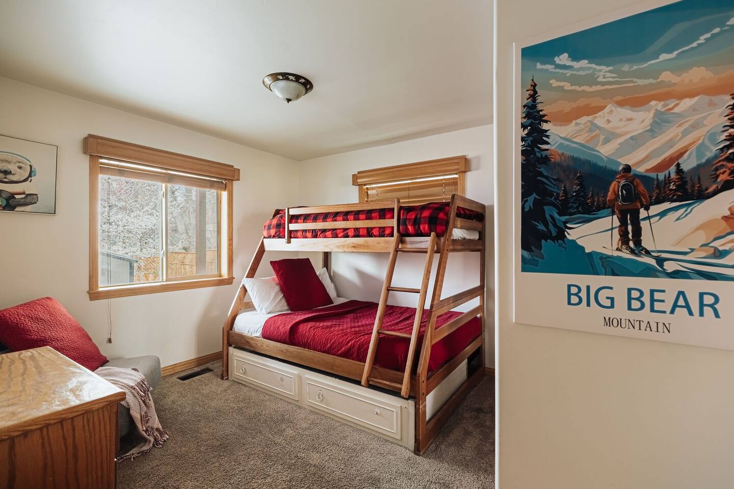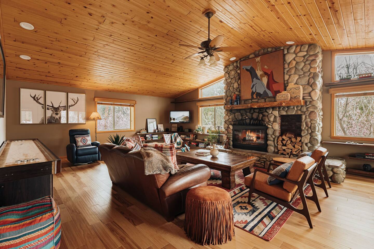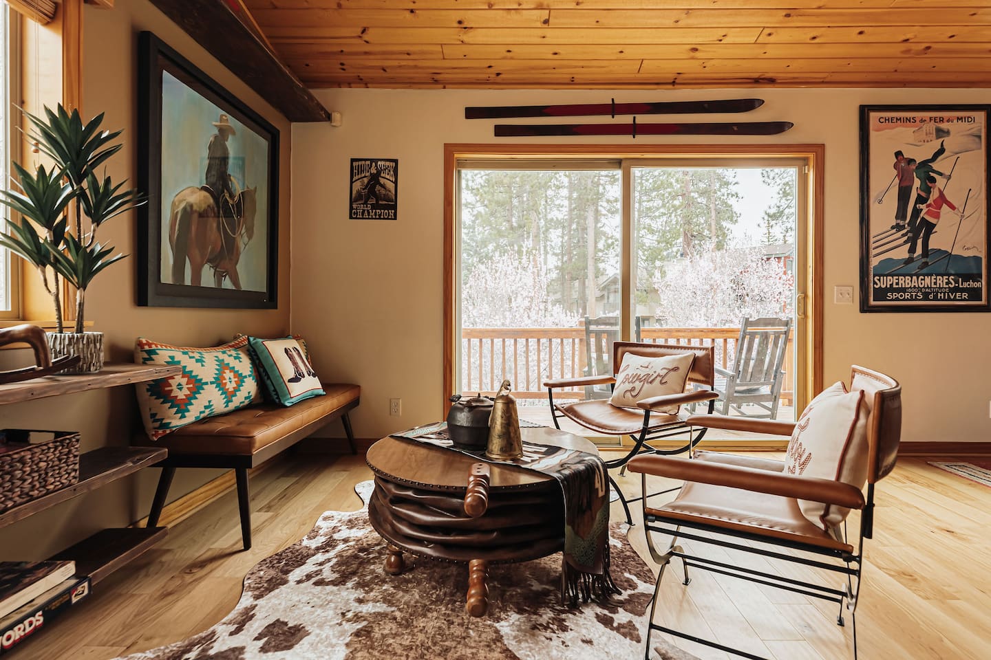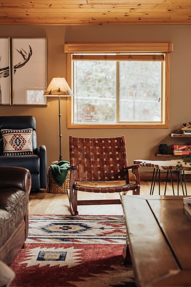 Saddle up for a unique mountain escape at this charming cowboy-themed log cabin, just a short walk to Bear Mountain! Unwind in the private hot tub or relax in the sauna after a day of adventure. The garage has been transformed into a game room with arcade classics—perfect for family fun. With warm western decor and rustic touches throughout, this cabin blends cozy comfort with true Wild West flair. Managed by The Orange Cabins, follow @theorangecabins for guidebooks & local recommendations.