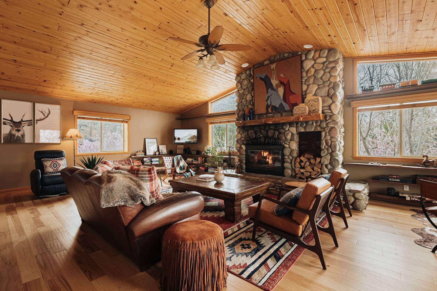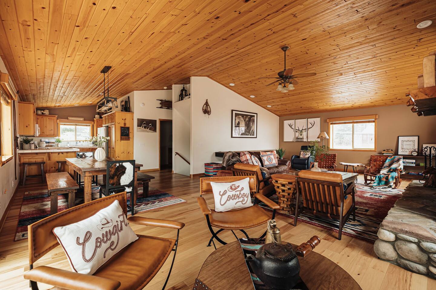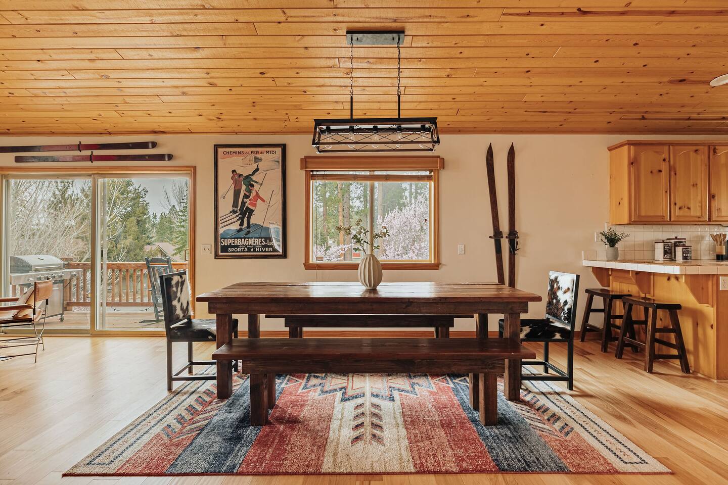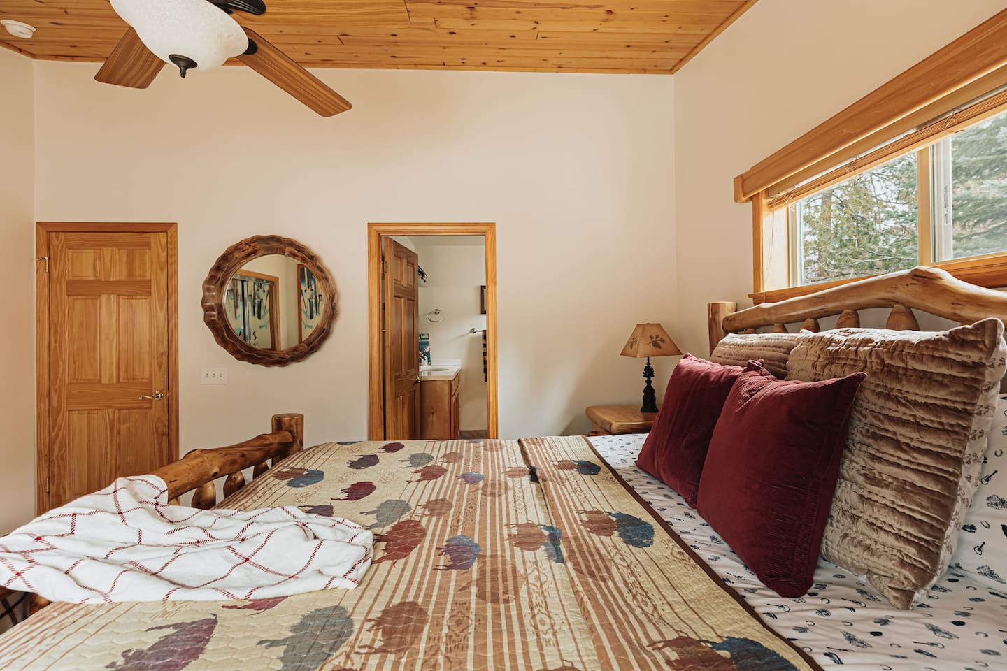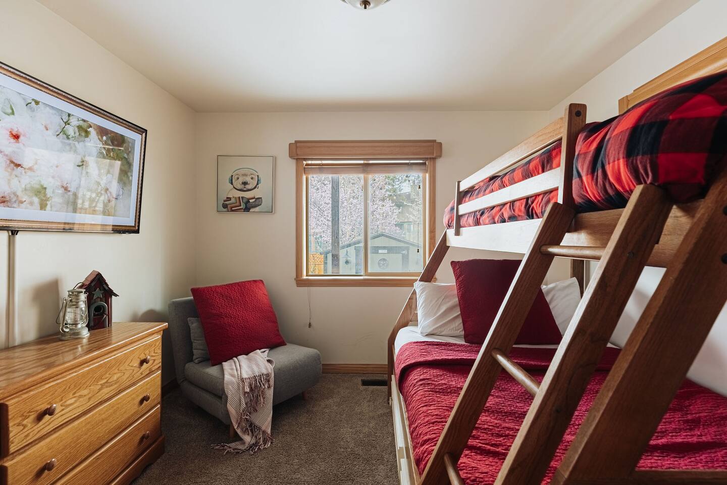 Saddle up for a unique mountain escape at this charming cowboy-themed log cabin, just a short walk to Bear Mountain! Unwind in the private hot tub or relax in the sauna after a day of adventure. The garage has been transformed into a game room with arcade classics—perfect for family fun. With warm western decor and rustic touches throughout, this cabin blends cozy comfort with true Wild West flair. Managed by The Orange Cabins, follow @theorangecabins for guidebooks & local recommendations.