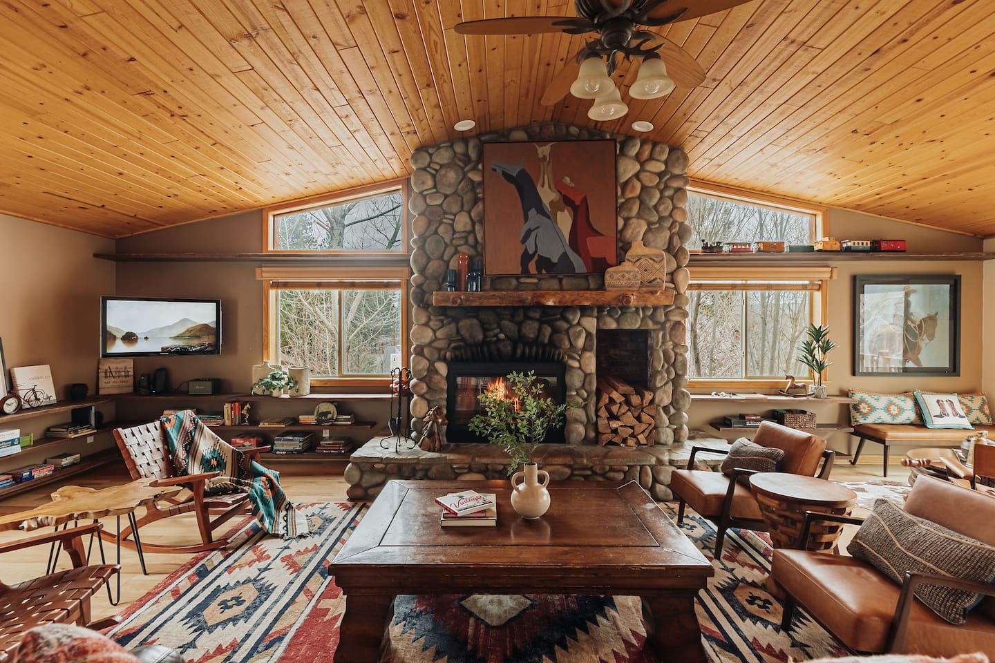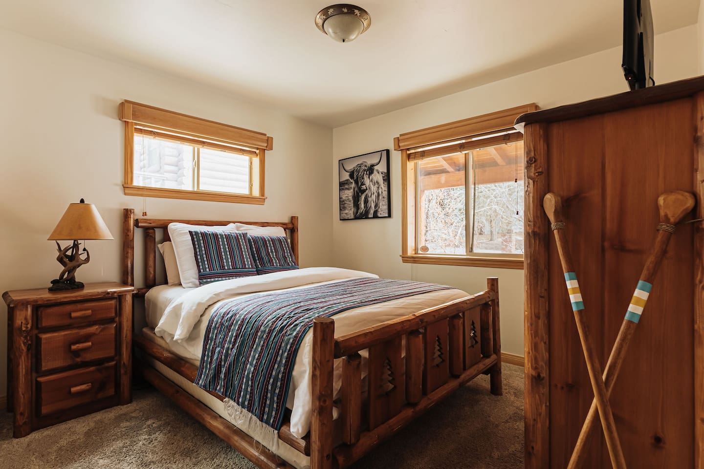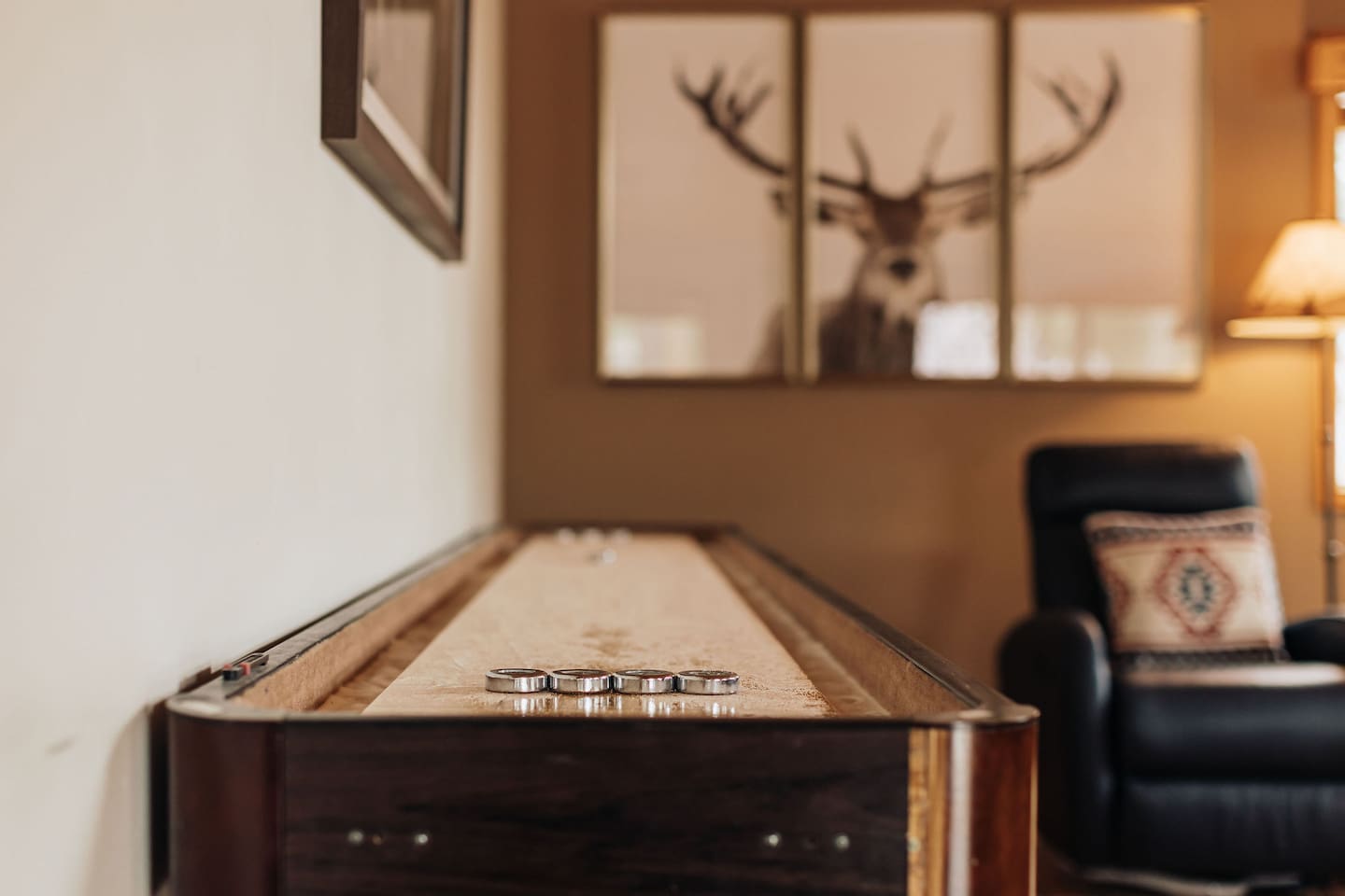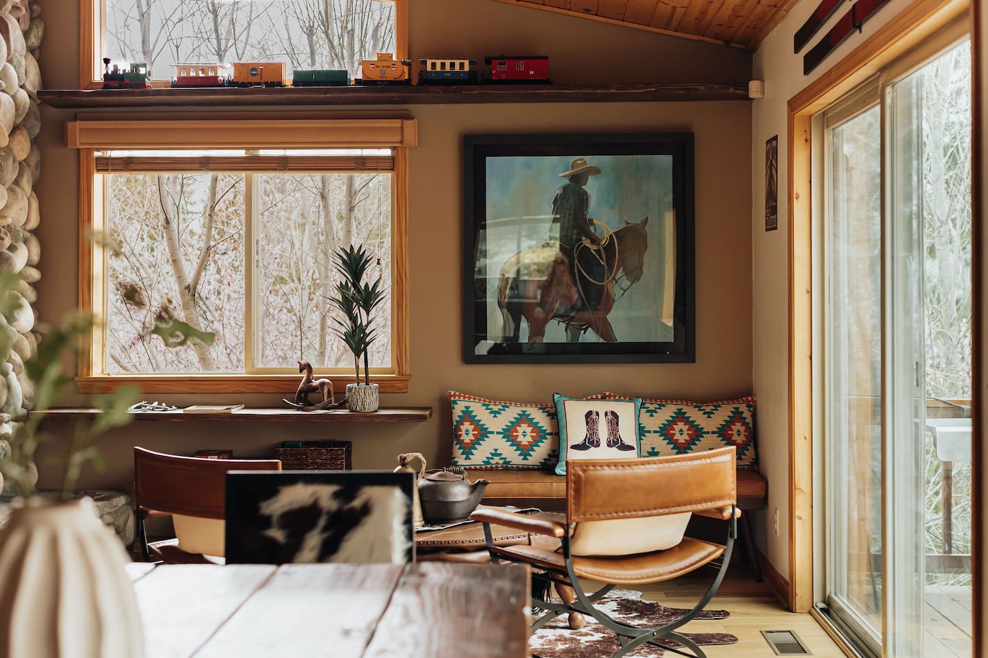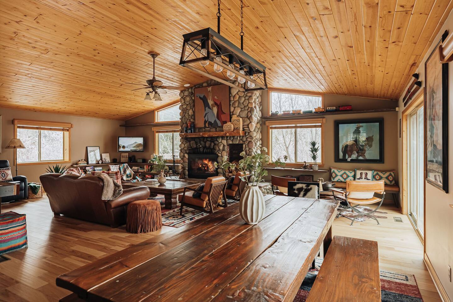 Saddle up for a unique mountain escape at this charming cowboy-themed log cabin, just a short walk to Bear Mountain! Unwind in the private hot tub or relax in the sauna after a day of adventure. The garage has been transformed into a game room with arcade classics—perfect for family fun. With warm western decor and rustic touches throughout, this cabin blends cozy comfort with true Wild West flair. Managed by The Orange Cabins, follow @theorangecabins for guidebooks & local recommendations.