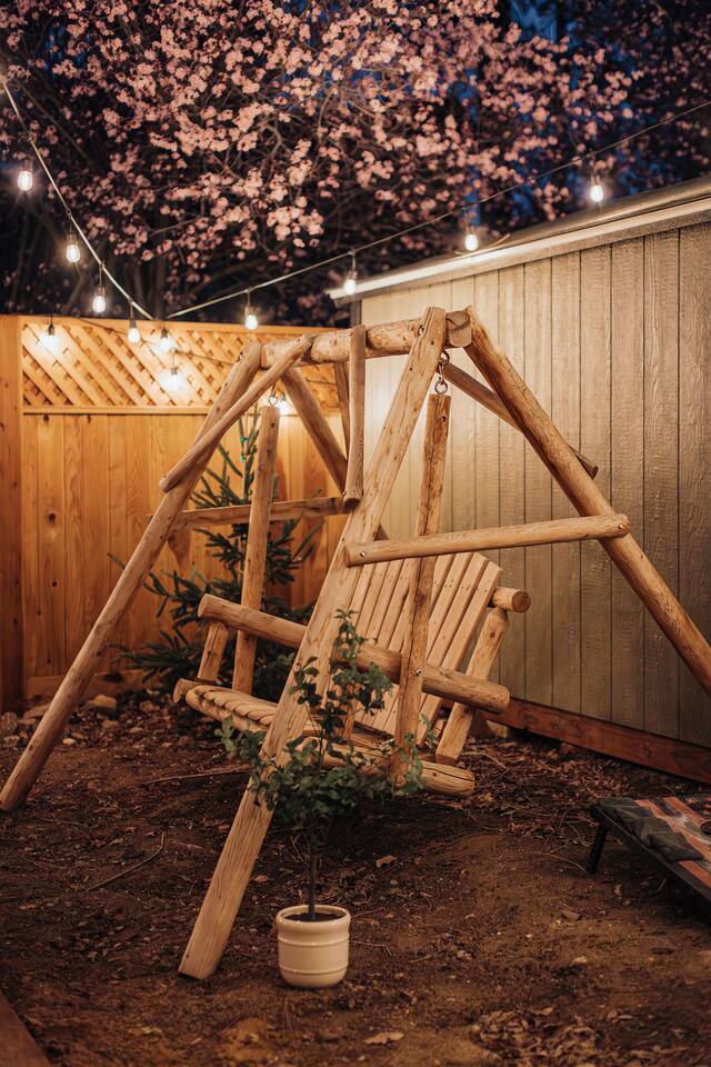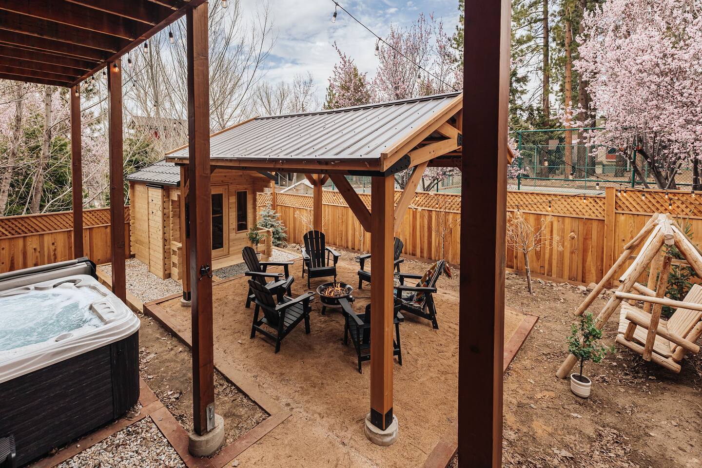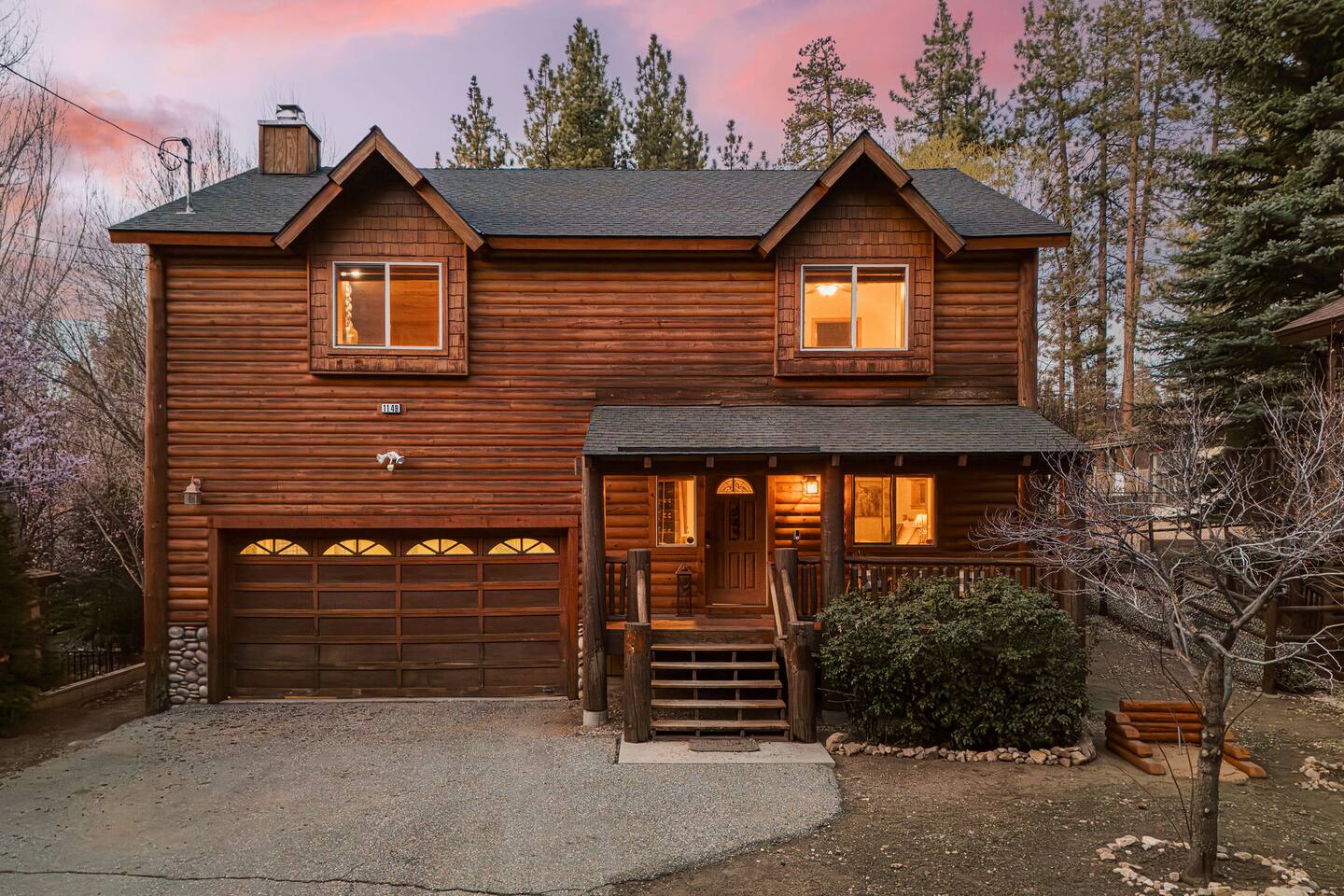 MAX OCCUPANCY: We have a max occupancy of 8 adults, with room for 2 children - 10 MAX. We have PARKING for up to 3 cars in our driveway. Please note, street parking is prohibited. LAYOUT: There are a few steps leading up to the front door. The first floor contains two bedrooms and a full bath. The upstairs top floors contains the main living area, master bedroom with an en-suite, and a half bath. *High-Speed Wifi & All Bedrooms Have a TV BEDROOM 1: This master suite is located on the second floor near the main living area w/ a luxurious King bed, en-suite bathroom, and a TV. BEDROOM 2: This bedroom contains a Queen bed and is located on the first floor. This room also contains a TV. BEDROOM 3: This room contains a twin over full bunk bed, with an additional twin trundle pull-out. We also have an air mattress for additional sleeping room. KITCHEN: Stocked kitchen with essentials & pots and pans for cooking. Drip coffeemaker & Keurig available - coffee pods, coffee beans, & sugar provided. FULLY FENCED BACKYARD contains a hot tub, sauna, propane firepit, and two swings for the ultimate family-fun or romantic retreat. WOOD BURNING FIREPLACE: Bring wood with you during your stay to use the cozy wood-burning fireplace. GARAGE GAMEROOM: Our garage has been converted into a game room with a ping pong table, arcade games, a pickleball net with paddles provided. PETS: Two house-trained dogs are allowed at this cabin, but they MUST be added to the reservation guest count. Dogs must never be left at the cabin unattended, unless crated. Dog sitter recommendations available upon request if needed. Central Air Conditioning & Central Heating As per San Bernardino County, you must be 21+ to book. PLEASE NOTE: After booking, a copy of the Good Neighbor Policy will be sent to the booker for signing, as required by our county.