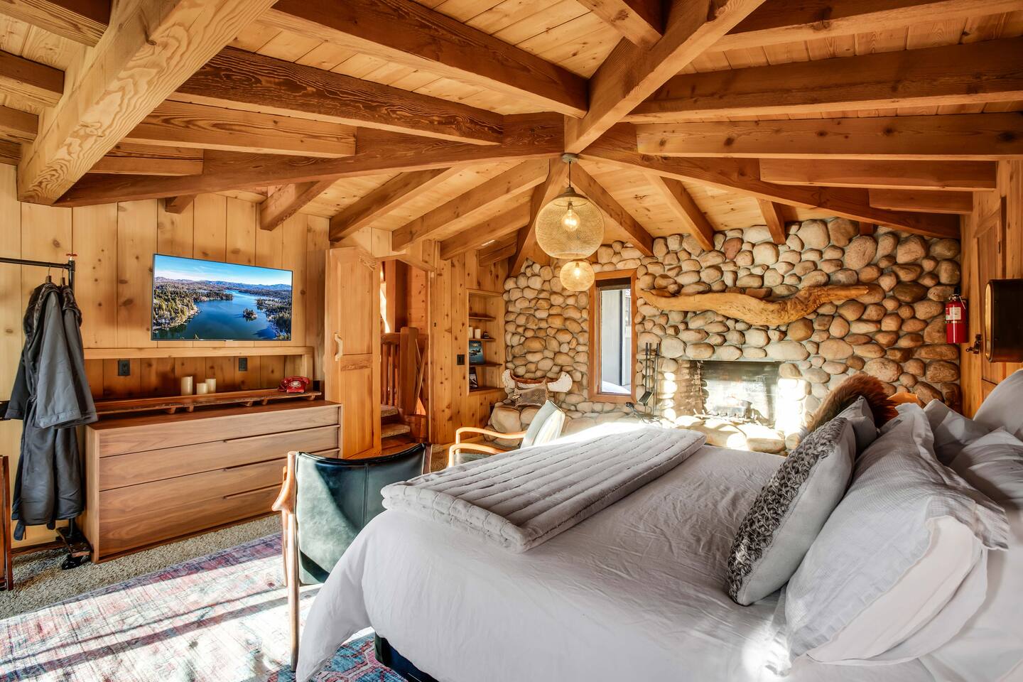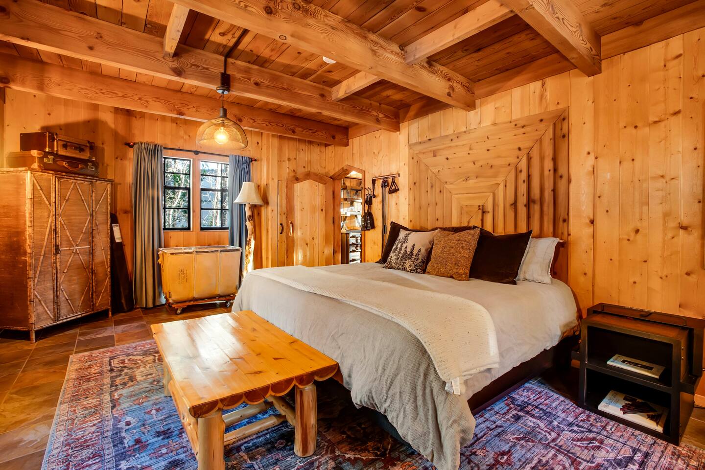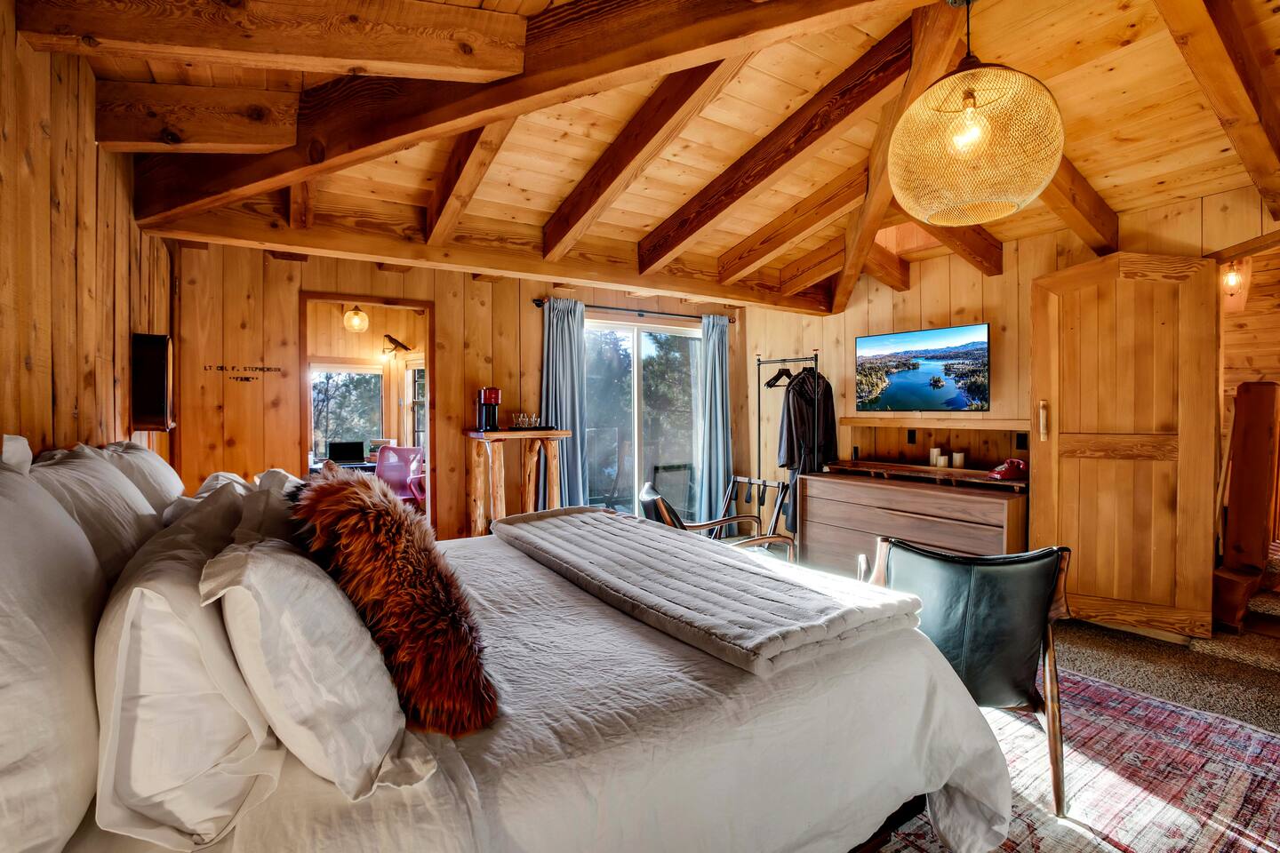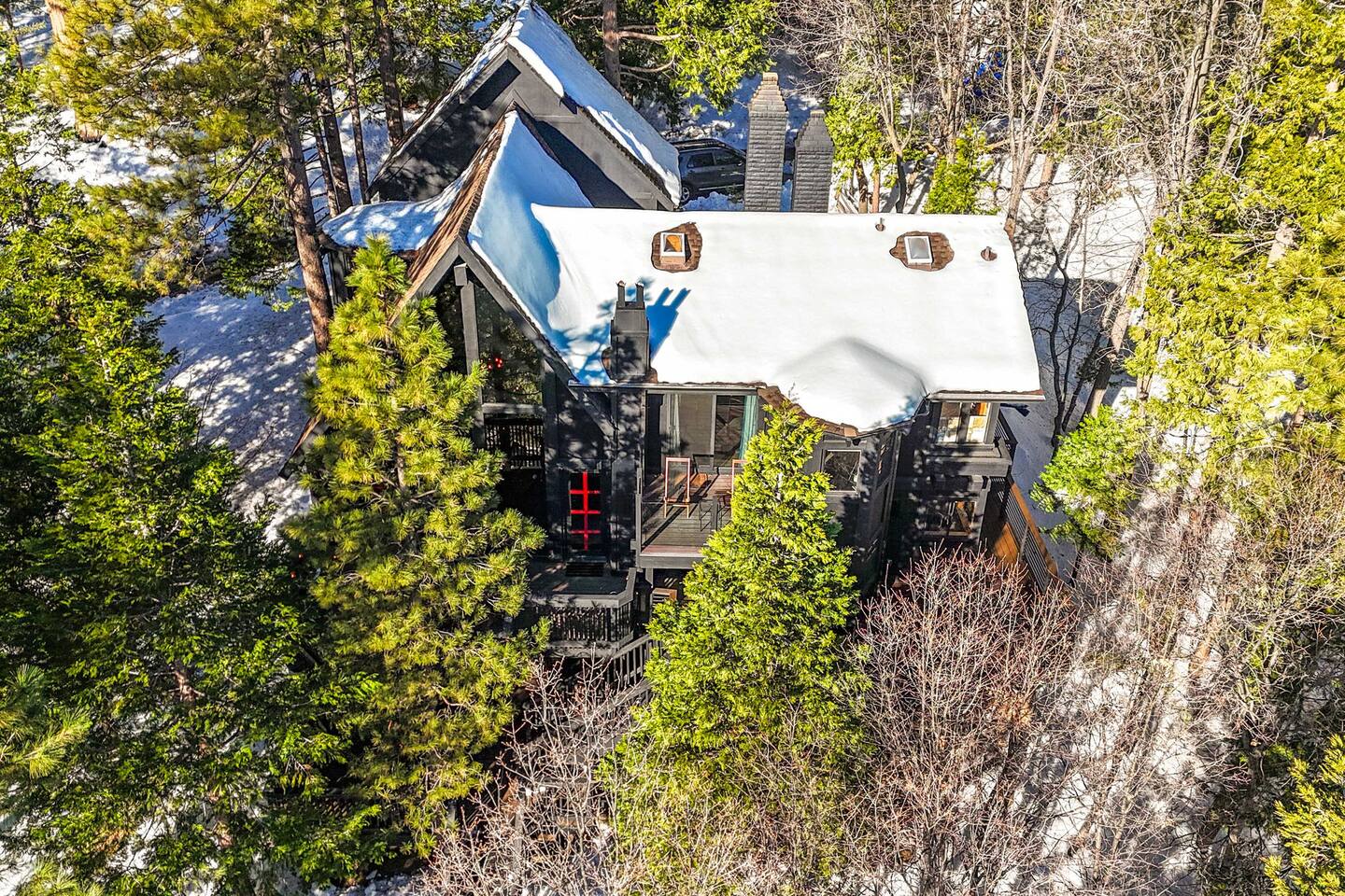 Tucked away in the pines, Secluded Chalet is not your typical mountain cabin. This four-bedroom retreat blends a dark, moody speakeasy aesthetic with the warmth of a classic Lake Arrowhead escape, creating a space that feels both intimate and unforgettable. Managed by The Orange Cabins - follow @theorangecabins for local guides and things to do.