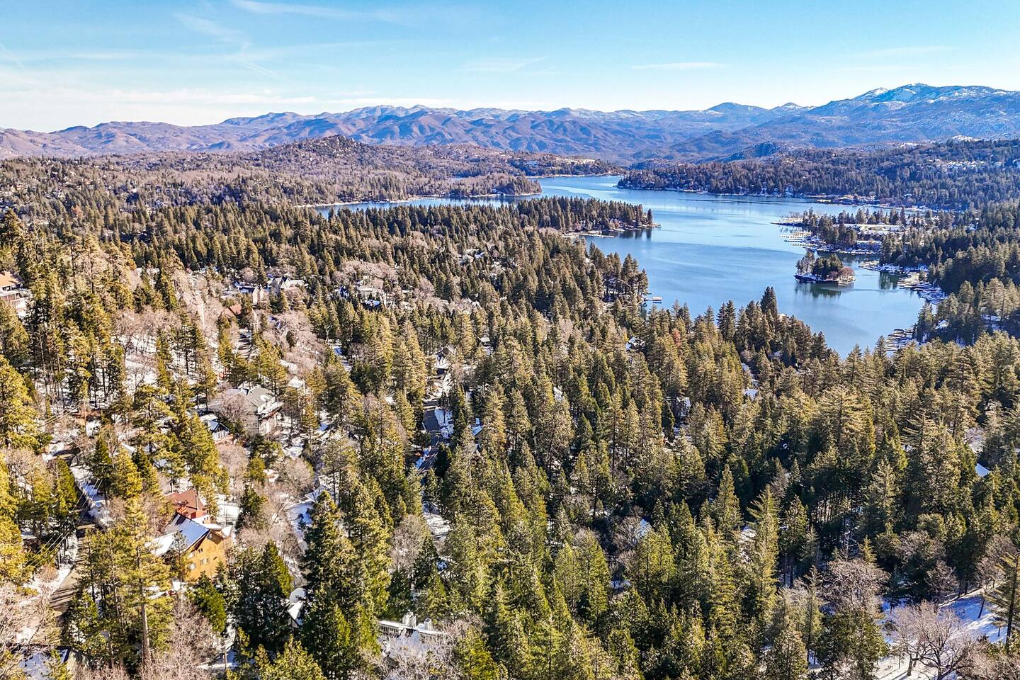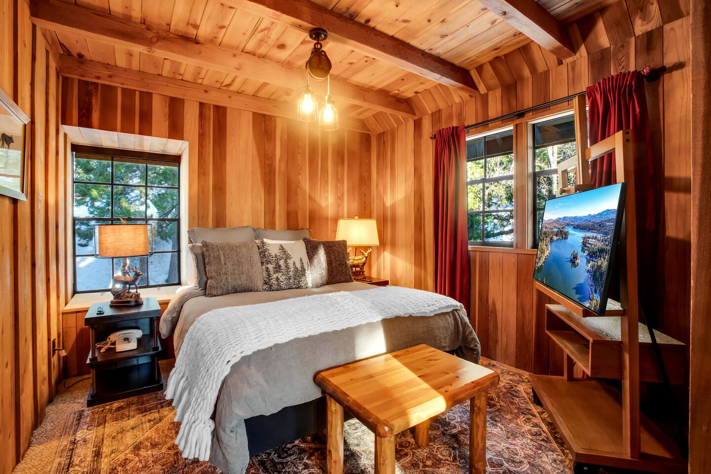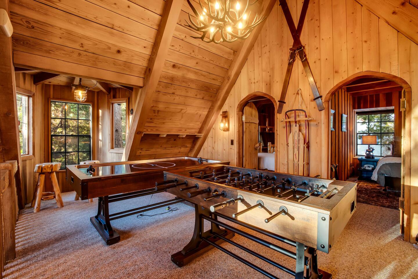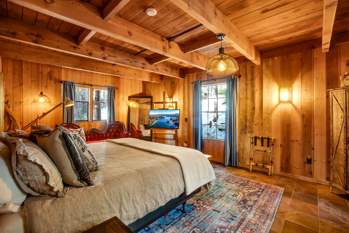 Tucked away in the pines, Secluded Chalet is not your typical mountain cabin. This four-bedroom retreat blends a dark, moody speakeasy aesthetic with the warmth of a classic Lake Arrowhead escape, creating a space that feels both intimate and unforgettable. Managed by The Orange Cabins - follow @theorangecabins for local guides and things to do.