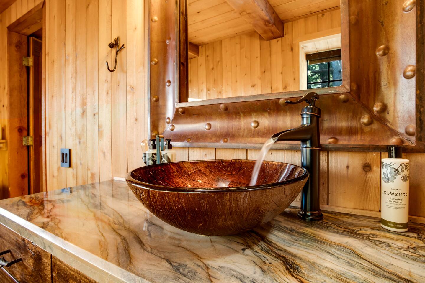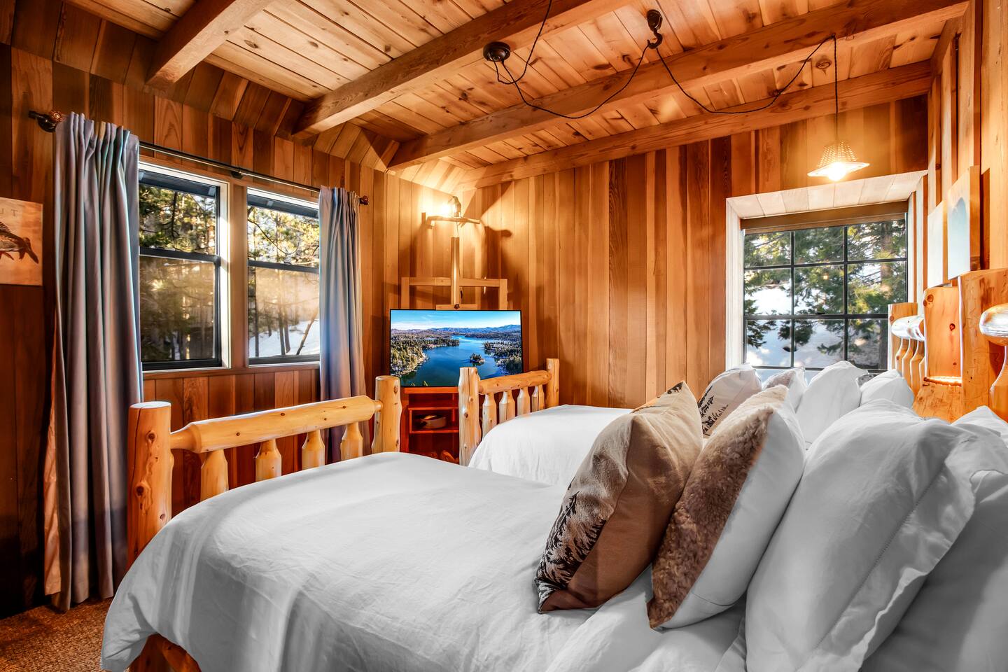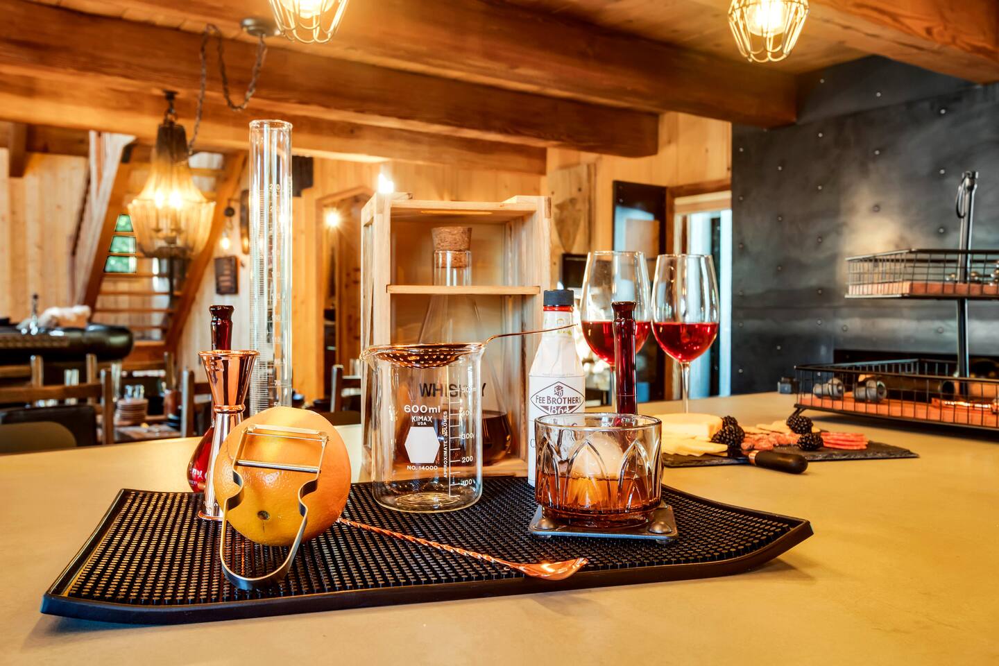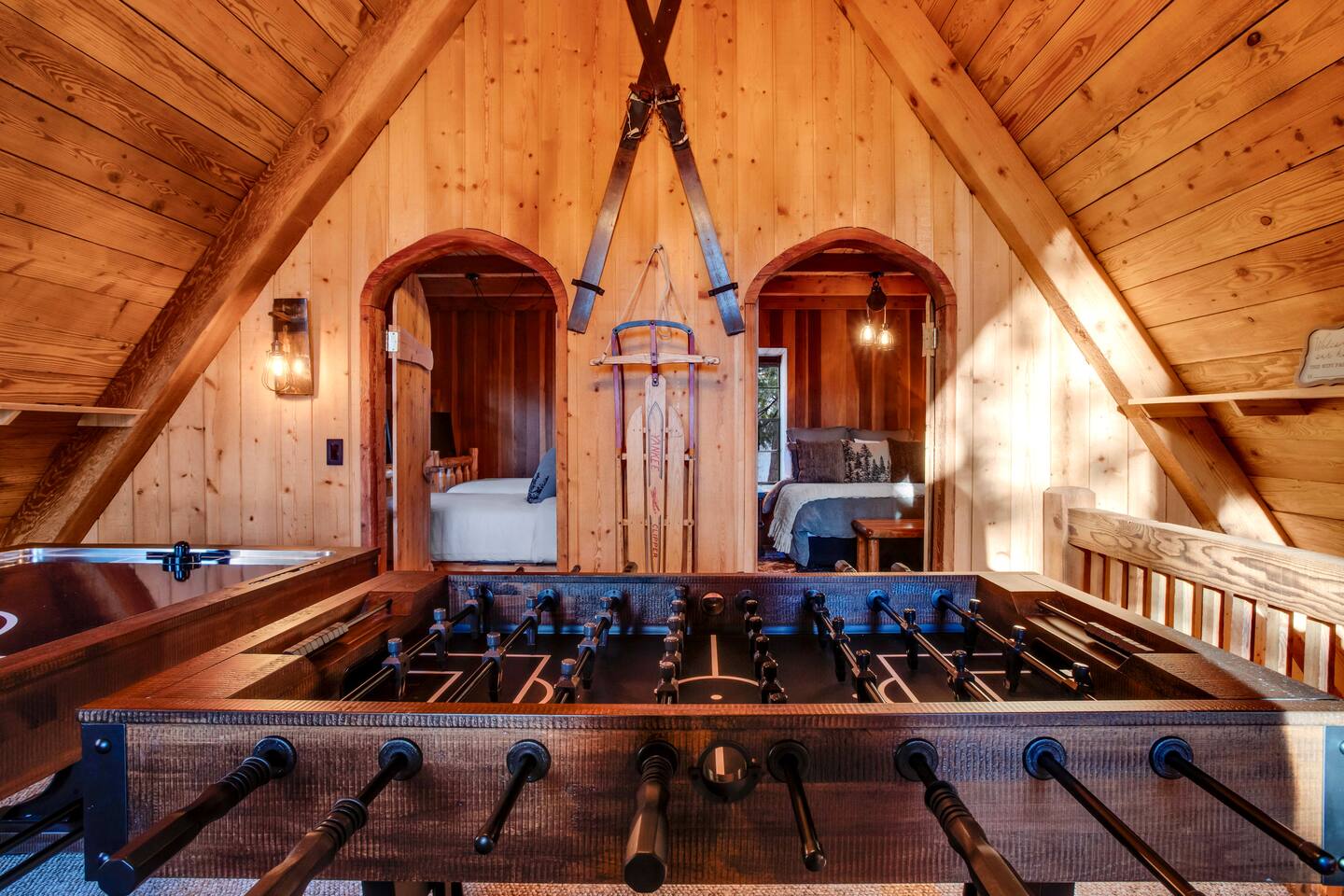 Tucked away in the pines, Secluded Chalet is not your typical mountain cabin. This four-bedroom retreat blends a dark, moody speakeasy aesthetic with the warmth of a classic Lake Arrowhead escape, creating a space that feels both intimate and unforgettable. Managed by The Orange Cabins - follow @theorangecabins for local guides and things to do.