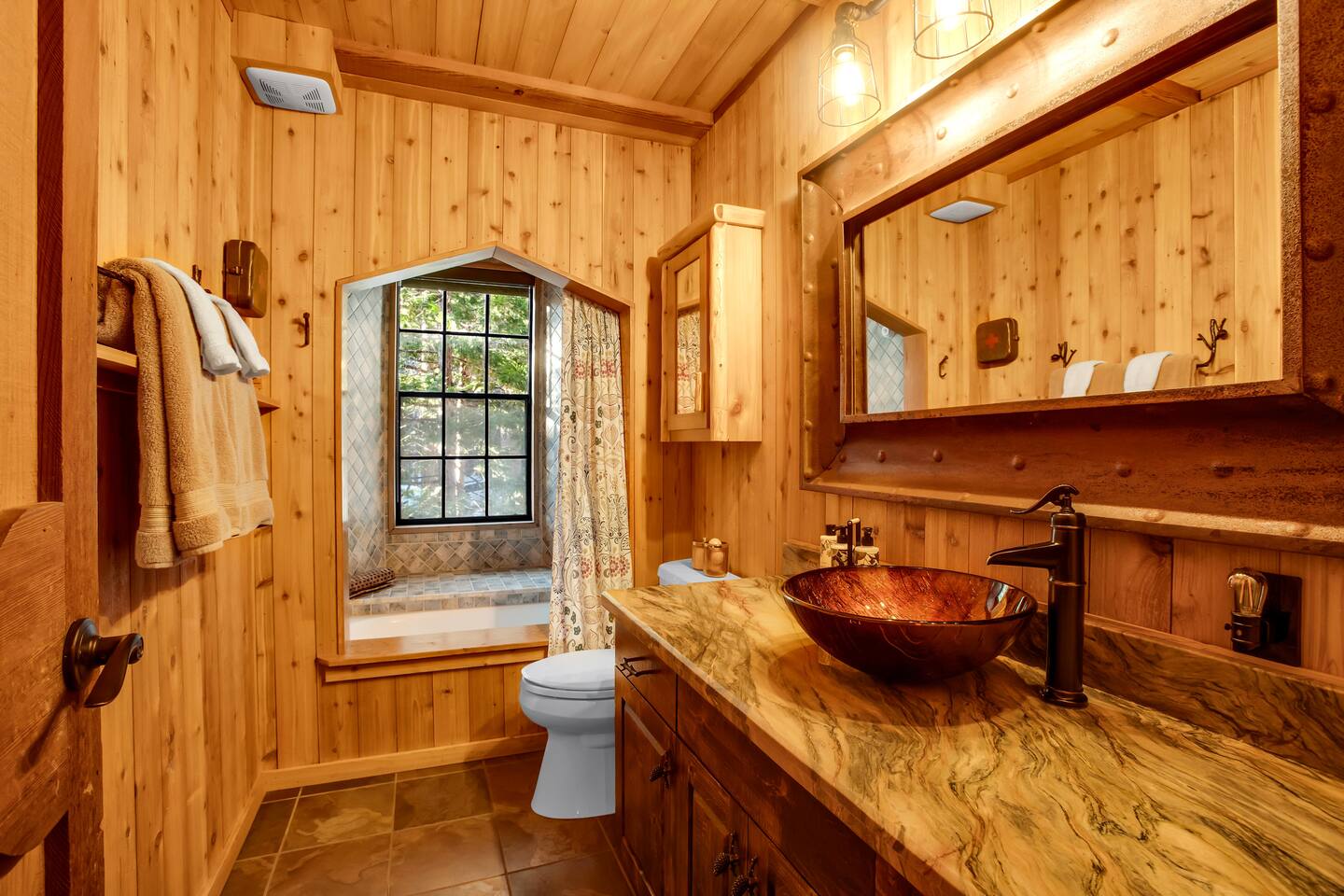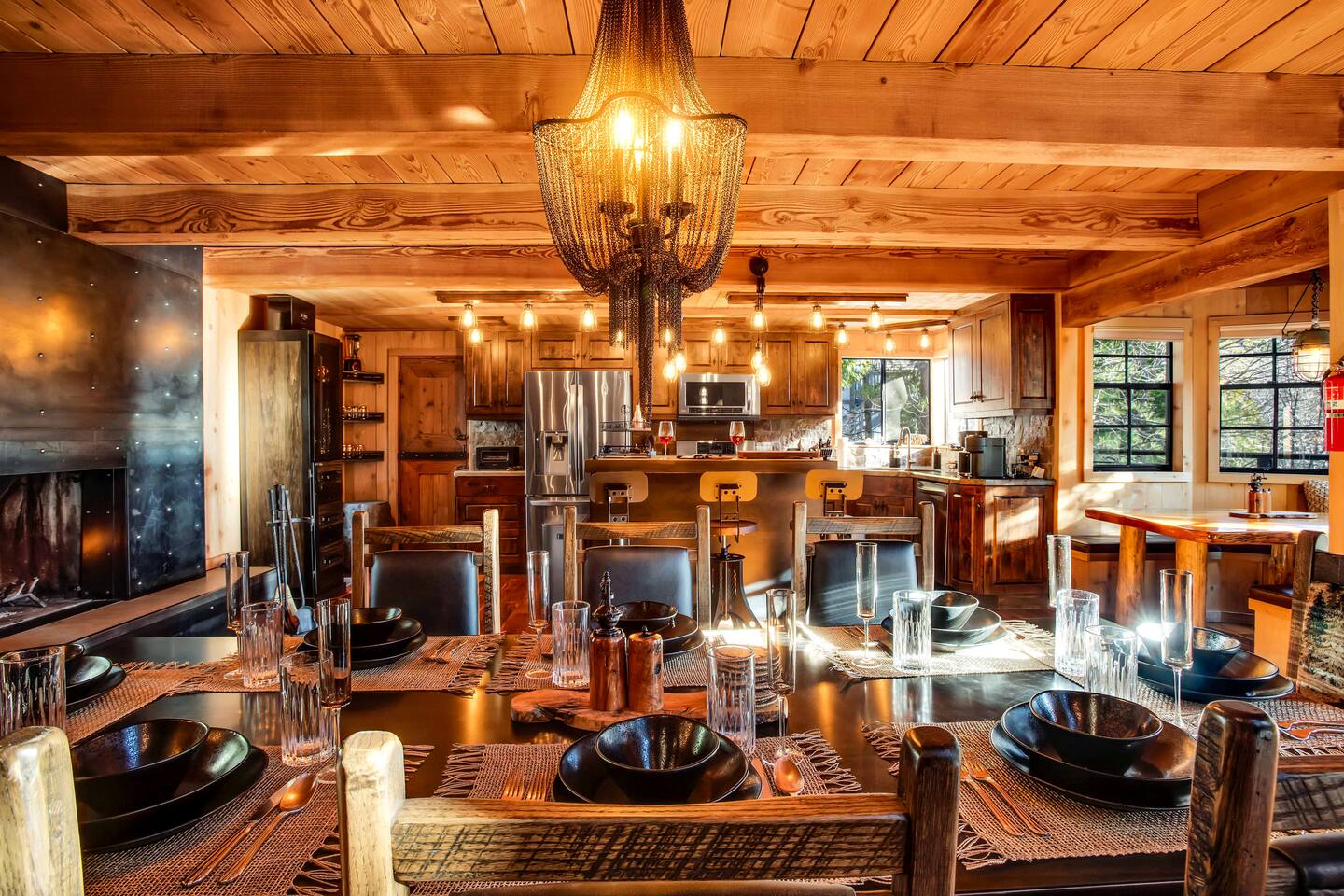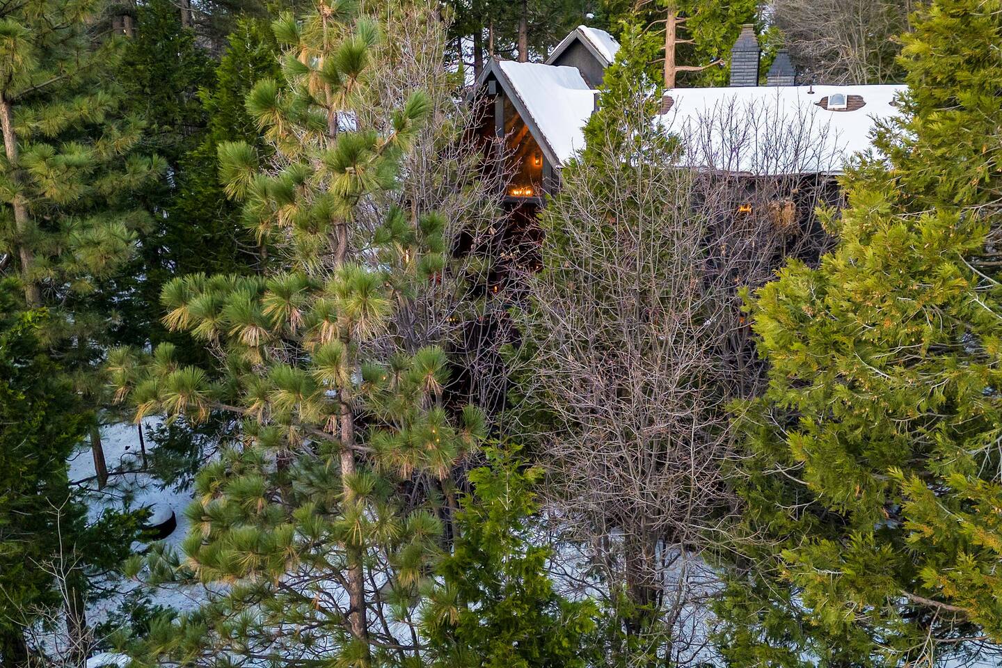 Max Occupancy: 8 guests Max Parking: 2-3 cars Slip inside and discover a home that reveals itself in layers, much like a well-kept secret. The main level offers a rare and discreet bedroom just beyond the front door, perfect for guests who appreciate effortless, step-free access. Tucked away yet immediately inviting, this room features a plush King bed and a television for winding down after the night’s indulgences. The bathroom, conveniently located in the entryway, is shared with the main living space. Upstairs, the house opens further. The primary suite feels like a private hideout above it all, complete with a King bed, a refined en-suite bath, and a cozy workstation nestled beside a view nook, ideal for quiet mornings or late-night plotting. A television adds to the comfort, should you choose to linger in. Two additional bedrooms on the second level offer comfortable, secluded quarters - perfect for couples, families, or trusted companions traveling together. At the heart of the home, a dramatic fireplace commands attention, casting a warm glow over lounge seating designed for whispered conversations, nightcaps, and unhurried mornings. From the low lighting to the rich textures, every detail feels intentional, polished, intimate, and just a little clandestine. Step outside and sink into the private hot tub, hidden beneath the trees. With the mountains standing guard and the world quiet around you, it’s easy to disconnect and disappear for a while. Whether you’re gathered by the fire, unwinding after a day at the lake, or simply savoring the atmosphere, Secluded Chalet delivers an experience that’s elevated, cozy, and unmistakably unique. Please note: No pets allowed. This hideaway is strictly humans-only. Perfect for guests seeking something stylish, unexpected, and wrapped in mystery - like the best places always are.