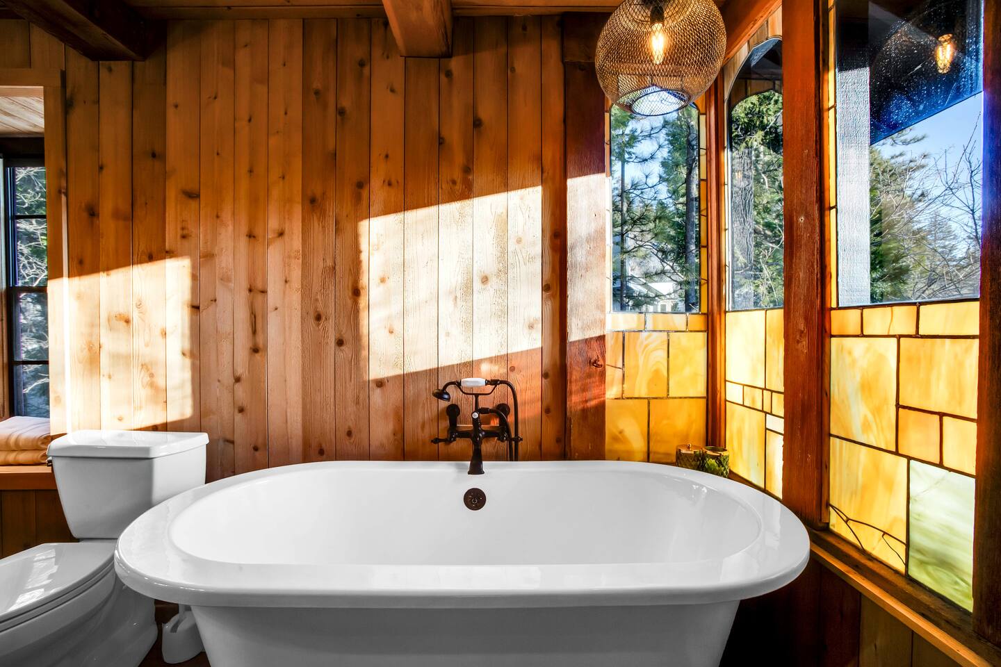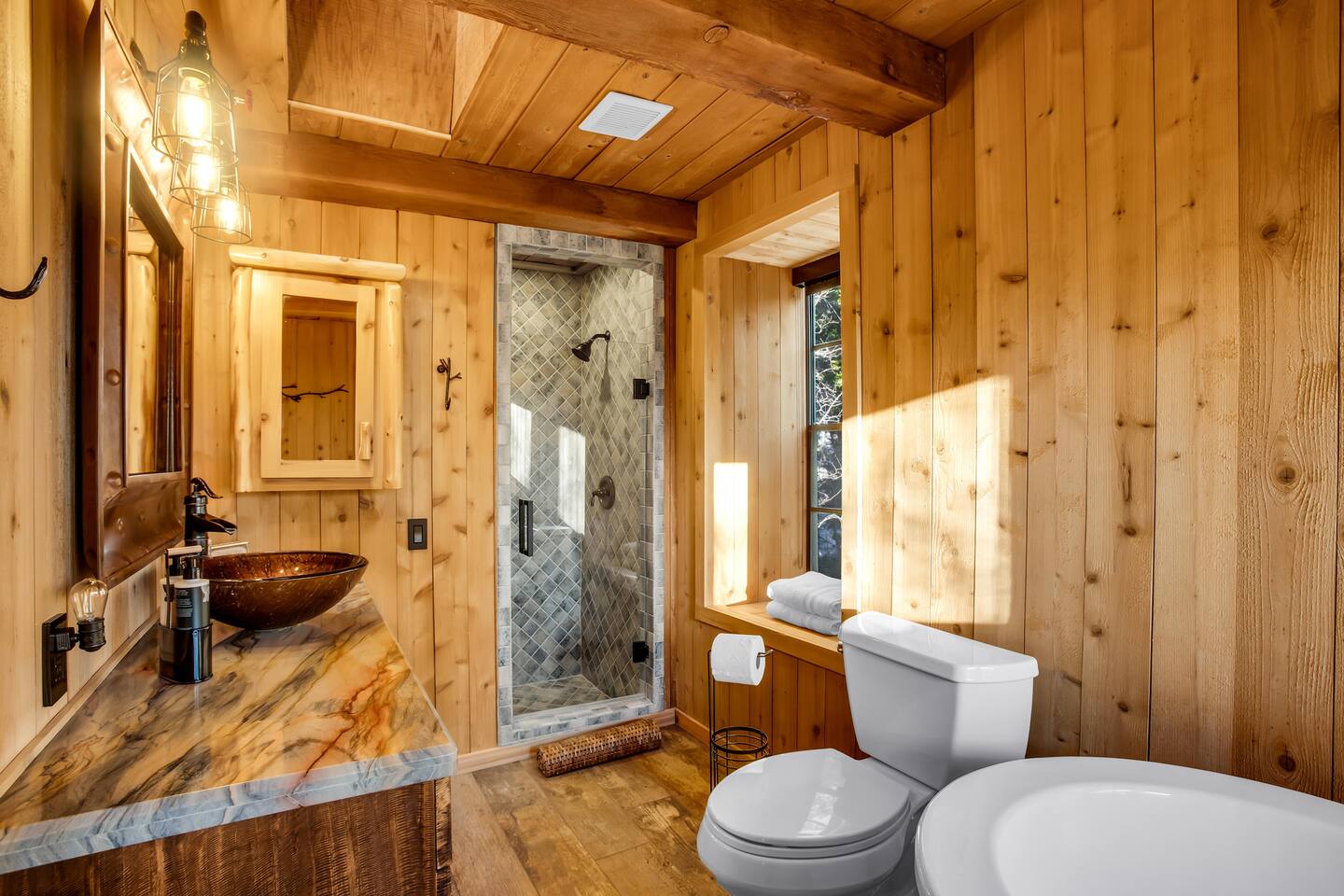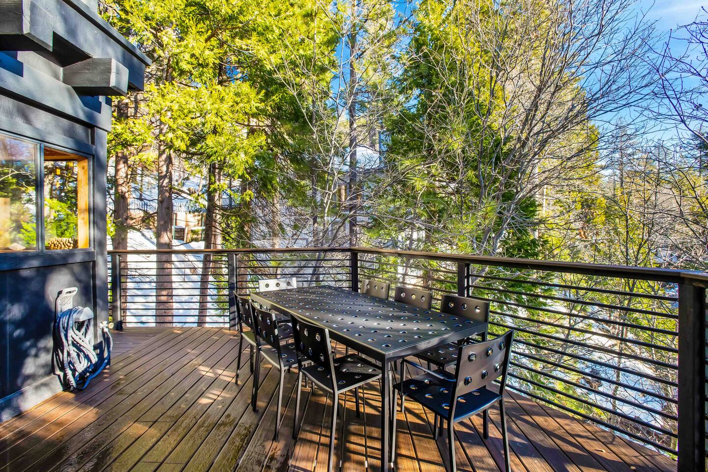 Max Occupancy: 8 guests Max Parking: 2-3 cars Slip inside and discover a home that reveals itself in layers, much like a well-kept secret. The main level offers a rare and discreet bedroom just beyond the front door, perfect for guests who appreciate effortless, step-free access. Tucked away yet immediately inviting, this room features a plush King bed and a television for winding down after the night’s indulgences. The bathroom, conveniently located in the entryway, is shared with the main living space. Upstairs, the house opens further. The primary suite feels like a private hideout above it all, complete with a King bed, a refined en-suite bath, and a cozy workstation nestled beside a view nook, ideal for quiet mornings or late-night plotting. A television adds to the comfort, should you choose to linger in. Two additional bedrooms on the second level offer comfortable, secluded quarters - perfect for couples, families, or trusted companions traveling together. At the heart of the home, a dramatic fireplace commands attention, casting a warm glow over lounge seating designed for whispered conversations, nightcaps, and unhurried mornings. From the low lighting to the rich textures, every detail feels intentional, polished, intimate, and just a little clandestine. Step outside and sink into the private hot tub, hidden beneath the trees. With the mountains standing guard and the world quiet around you, it’s easy to disconnect and disappear for a while. Whether you’re gathered by the fire, unwinding after a day at the lake, or simply savoring the atmosphere, Secluded Chalet delivers an experience that’s elevated, cozy, and unmistakably unique. Please note: No pets allowed. This hideaway is strictly humans-only. Perfect for guests seeking something stylish, unexpected, and wrapped in mystery - like the best places always are.