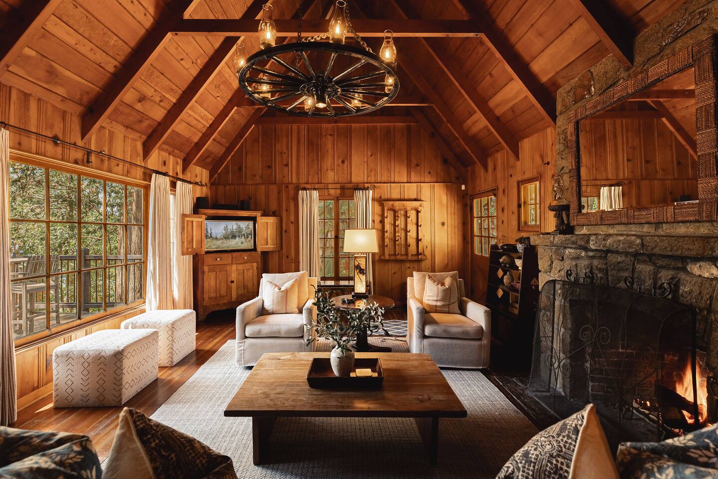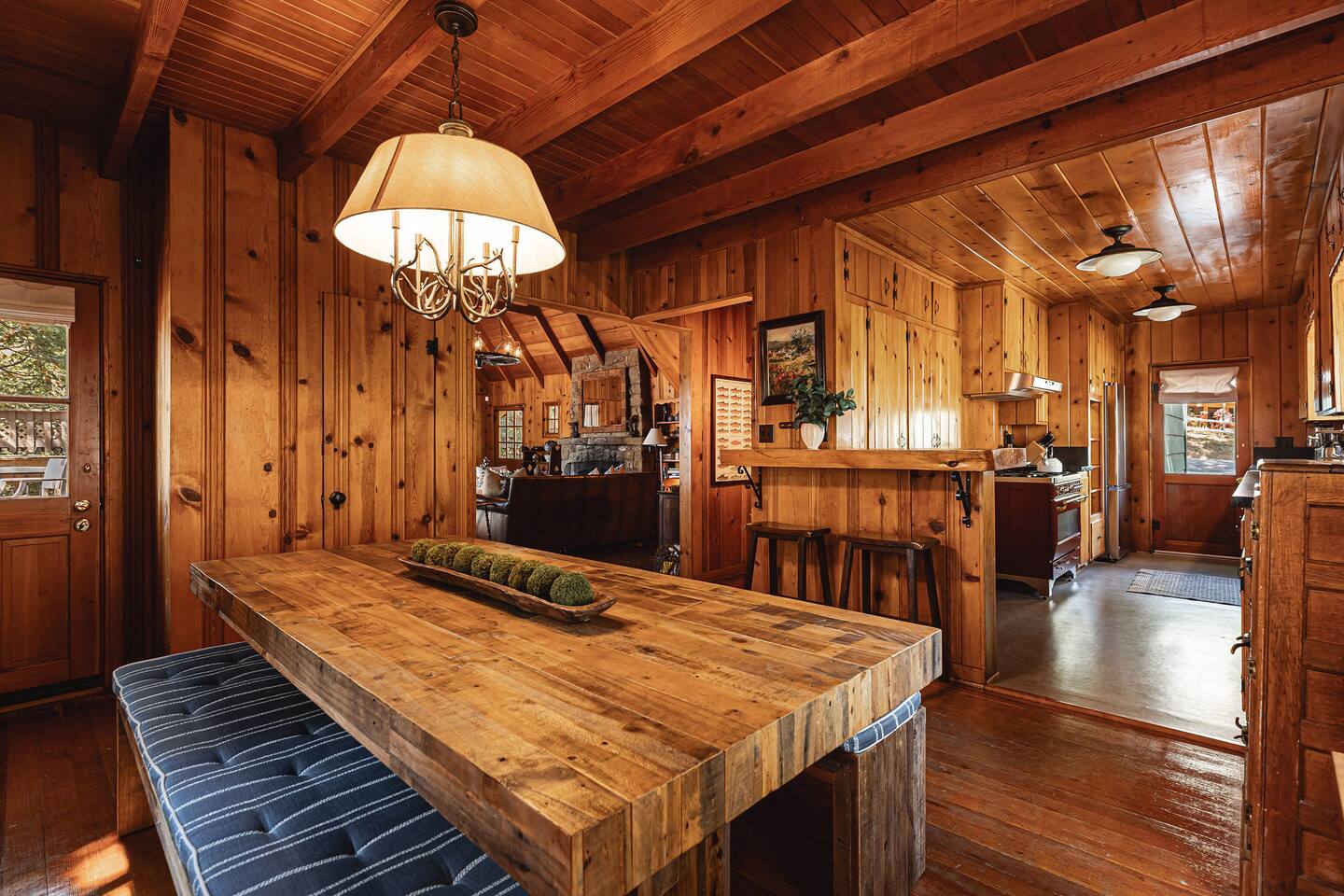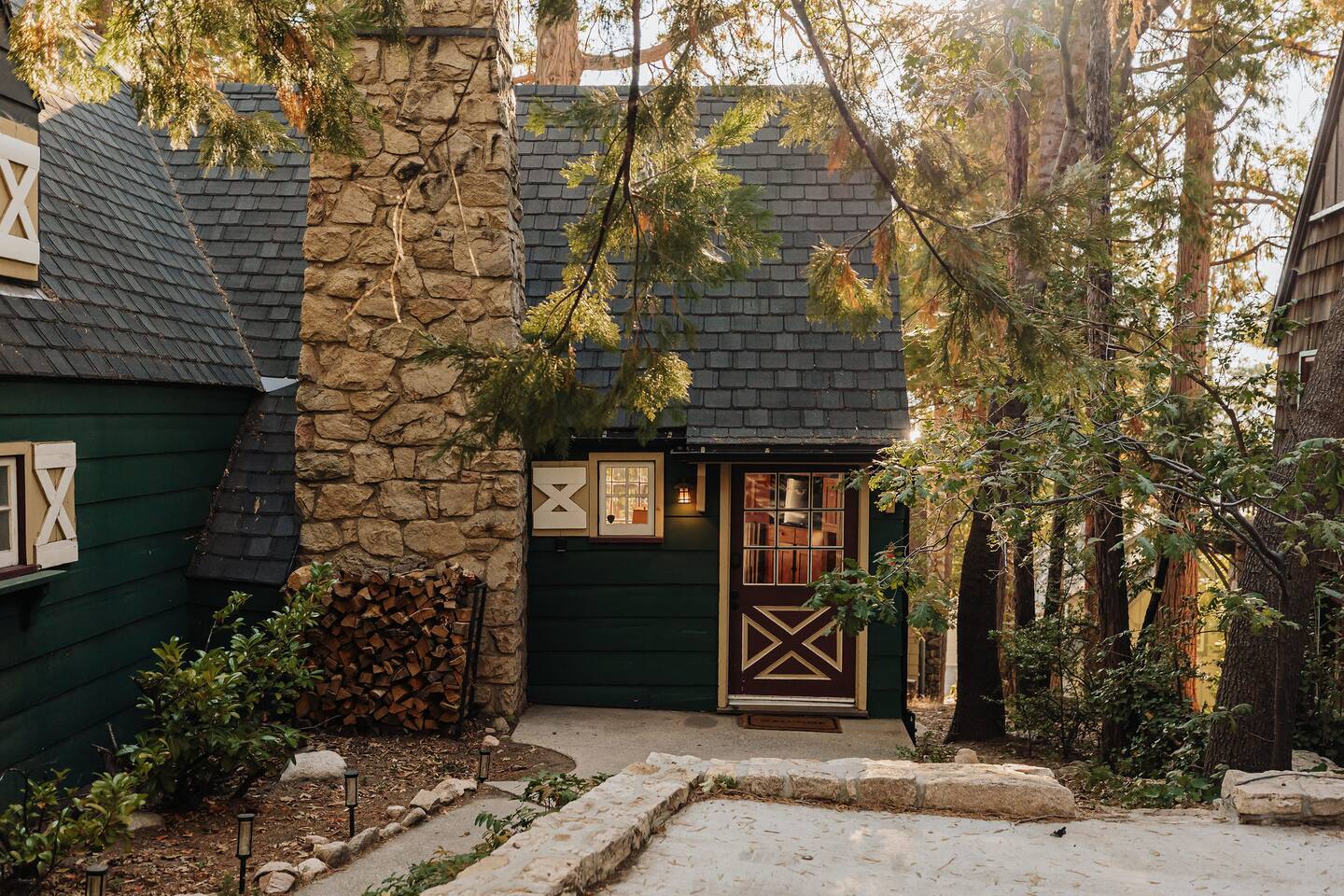 LAYOUT: *Please note that Bedroom 4 is NOT connected to the home. It has a private entrance, along with its own en-suite. The home itself is two stories, with Bedrooms 1-3 on the second floor. One full bathroom is located on the main level and one full bathroom is located on the top level near the bedrooms. Bedroom 3 can only be accessed by passing through Bedroom 2. MAX OCCUPANCY: 8 guests MAX PARKING: 3 cars BEDROOM 1: This luxurious King bedroom is located on the top with beautiful views. BEDROOM 2: This room has a single bed, with a trundle pull-out for additional sleeping space. Please note: will have to pass this room to get into bedroom 3. BEDROOM 3: This playful kids room has four twin beds throughout & lots of fun toys & games. BEDROOM 4: This King master suite is not attached to the rest of the home. It can be accessed be either walking down the stairs from the back patio or by simply walking around the front of the home. It has a TV and it's own private en-suite bathroom here. KITCHEN: PATIO: The back patio has a gorgeous view of the lake. We have a propane firepit, outdoor dining table, and a propane barbecue. PETS: Two house-trained dogs are allowed at this cabin, but they MUST be added to the reservation guest count as that will add the pet fee onto your reservation. Dogs must never be left unattended at the home, unless crated. Central heating throughout the home. As per San Bernardino County, you must be 21+ to book. WINTER TRAVEL: Please note that during winter, you are required to carry snow tire chains with you at all times. Please plan to bring a 4-wheel drive vehicle. The mountain weather changes frequently and we want all our guests to come prepared. During snow, we clear the driveway and the entrance to the front door upon arrival. After that, we provide shovels and snow removal contacts upon request if you need it for the duration of your stay. If you are unsure about driving in the snow, please make sure to purchase travel insurance through airbnb.
