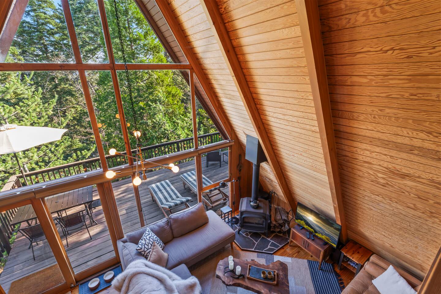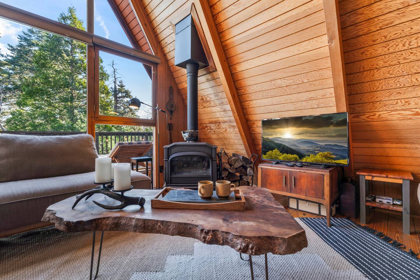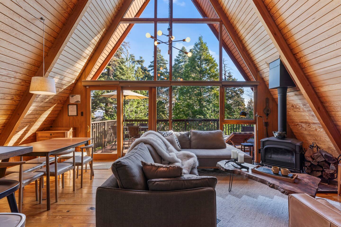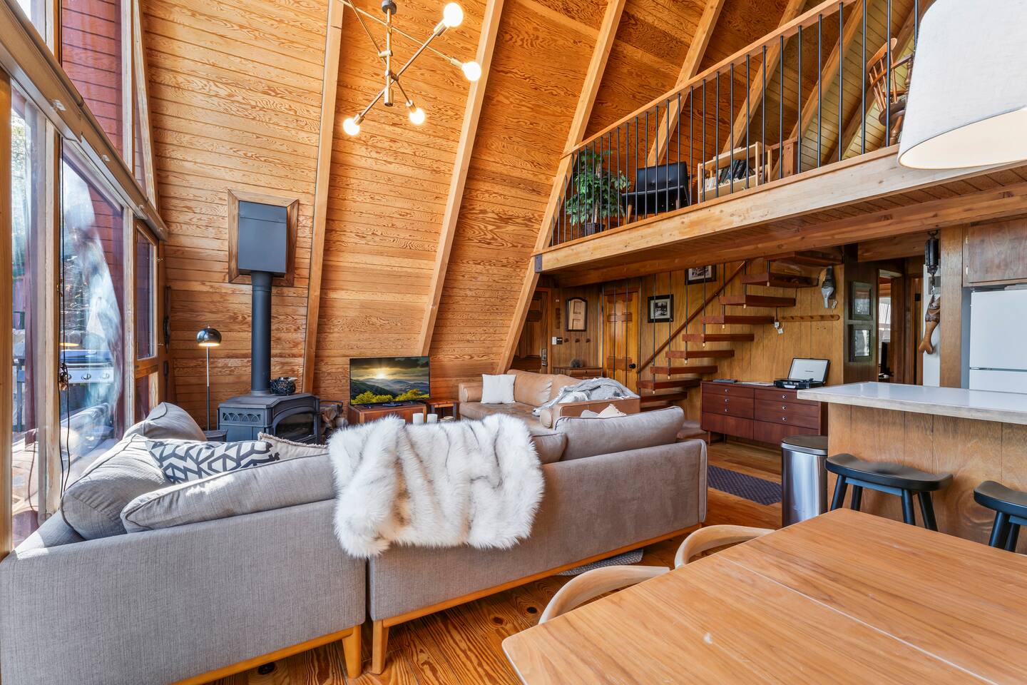 This stunning, vintage mid-century modern A-frame is gracefully nestled among the pines, offering an idyllic view of the surrounding forest. Inside, the home's distinctive design is unmatched, with an inviting blend of cozy decor and architectural charm. Ideally located, this enchanting sanctuary is a perfect getaway for a small family or couples seeking both tranquility and proximity to nearby attractions. Follow @TheOrangeCabins for guidebook & things to do in the area.