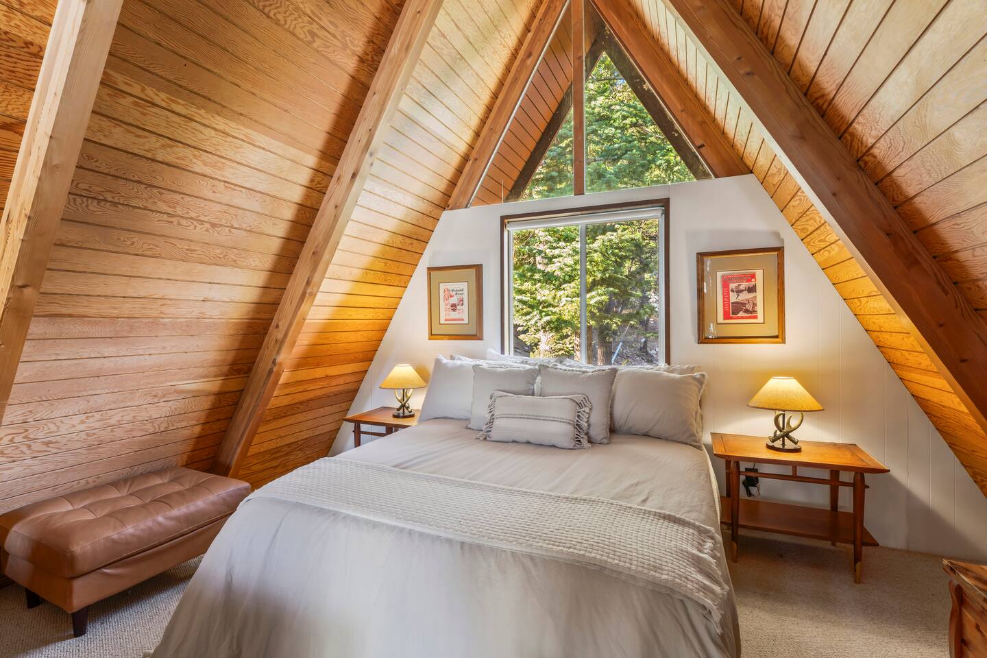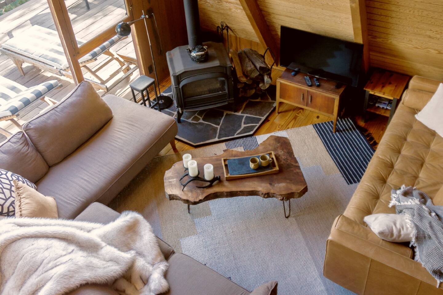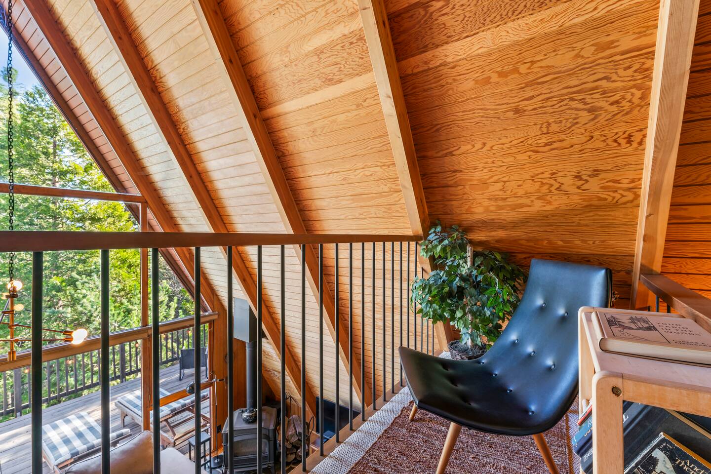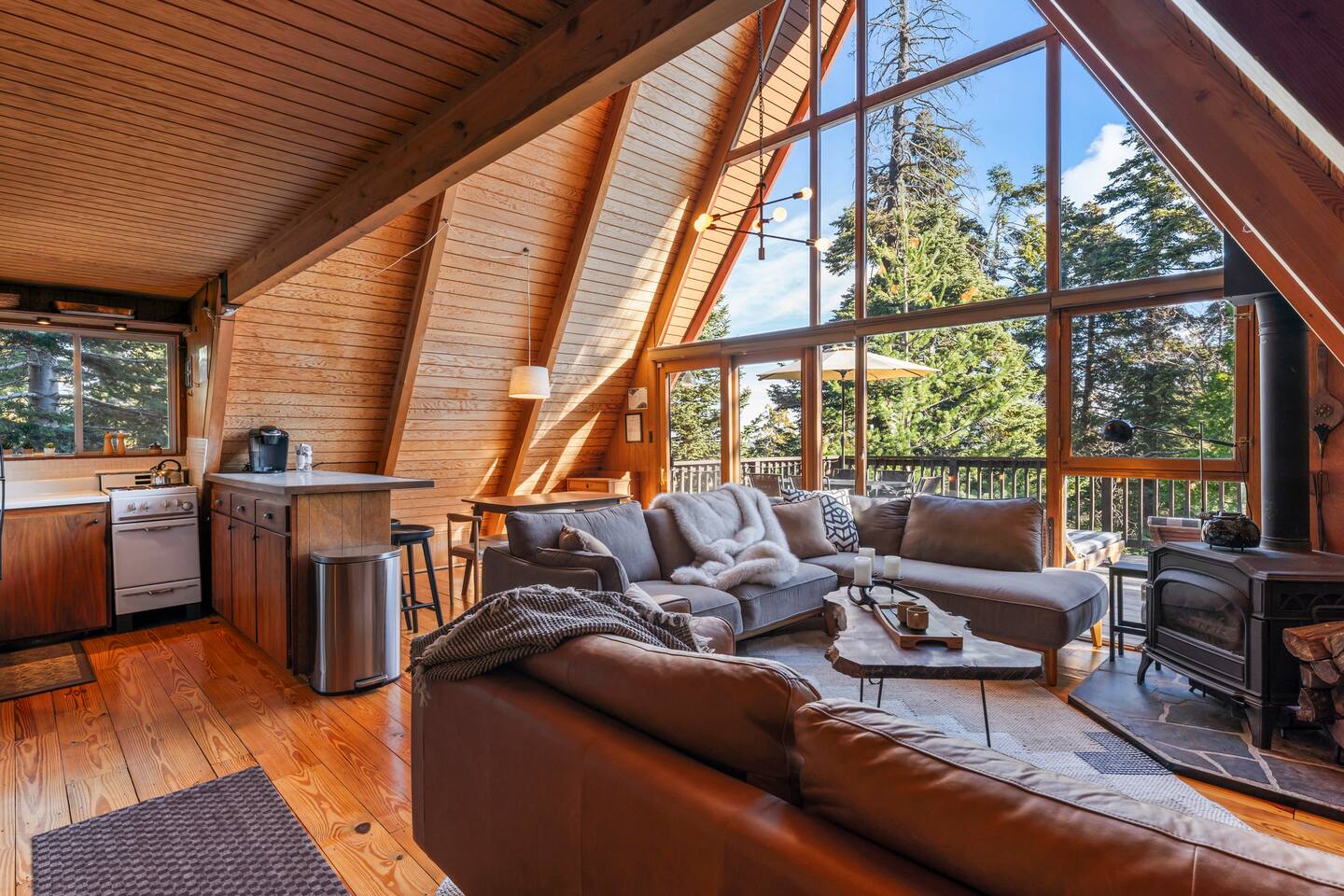 This stunning, vintage mid-century modern A-frame is gracefully nestled among the pines, offering an idyllic view of the surrounding forest. Inside, the home's distinctive design is unmatched, with an inviting blend of cozy decor and architectural charm. Ideally located, this enchanting sanctuary is a perfect getaway for a small family or couples seeking both tranquility and proximity to nearby attractions. Follow @TheOrangeCabins for guidebook & things to do in the area.