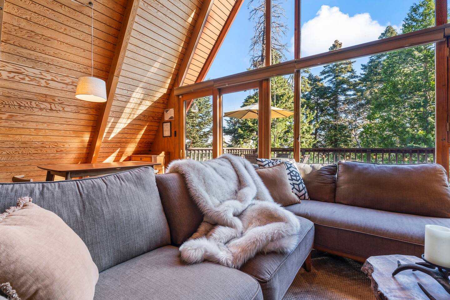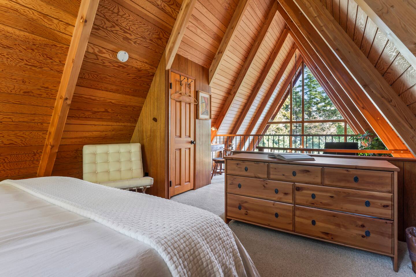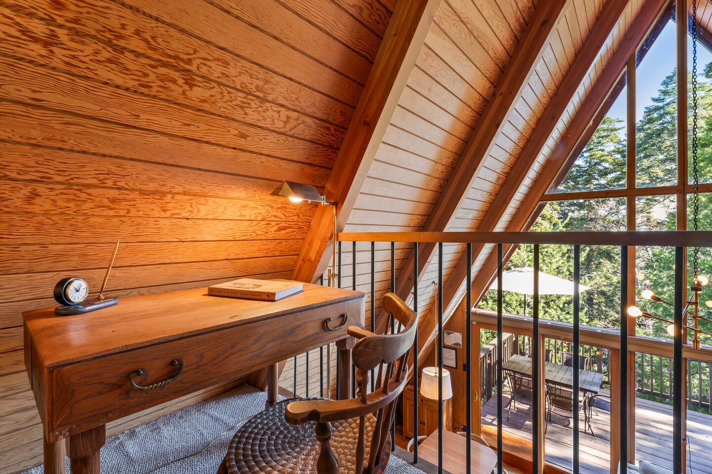LAYOUT: There are two bedrooms on the main floor, along with living space and the bathroom. The second story contains the loft bedroom. PARKING: We have two spots side by side, but at least one of the cars must be on the smaller side as it’s a tight squeeze. No street parking. BEDROOMS 1 & 2: These bedrooms are both located on the main floor, with a Queen & Full bed. LOFT BEDROOM: This loft area has a luxurious Queen bed, work desk, and reading nook with the most amazing forest views. BATHROOM: The cabin has one bathroom on the main floor which is a single vanity and shower/tub combo. KITCHEN: Our kitchen is stocked with pots, pans, a Keurig, drip coffee maker, olive oil, salt & pepper. Complimentary Keurig pods, raw sugar, & individual creamers provided. Please note: our stove/oven is a compact size & the vintage nature of it requires a lighter to start it. *We do have a wall unit for HEATING that needs to be manually lit, and we have additional space heaters in the bedrooms as well, for your convenience. PET-FRIENDLY: We allow up to 2 house-trained, well-behaved dogs as long as they are added to the reservation count. Please ensure that you bring all the supplies for them (including poop bags) and kindly clean up after them. We ask pets be kept off all furniture, but if they must come up, we ask you bring a blanket for them or use our provided pet blanket. Pets are NEVER to be left unattended at the cabin at any time, unless crated. Sorry, no cats! No washer/dryer at this cabin, but there is a local laundromat nearby. Must be 21+ years to book as per San Bernardino County regulations. *WINTER TRAVEL: Please note that during winter, you are required to carry snow tire chains with you. The mountain weather changes frequently & we want all our guests to come prepared. During snow, we clear the driveway & the entrance to the front door upon arrival. After that, we provide shovels & snow removal contacts if you need it for the duration of your stay. If you are unsure about driving in the snow, please make sure to get travel insurance.