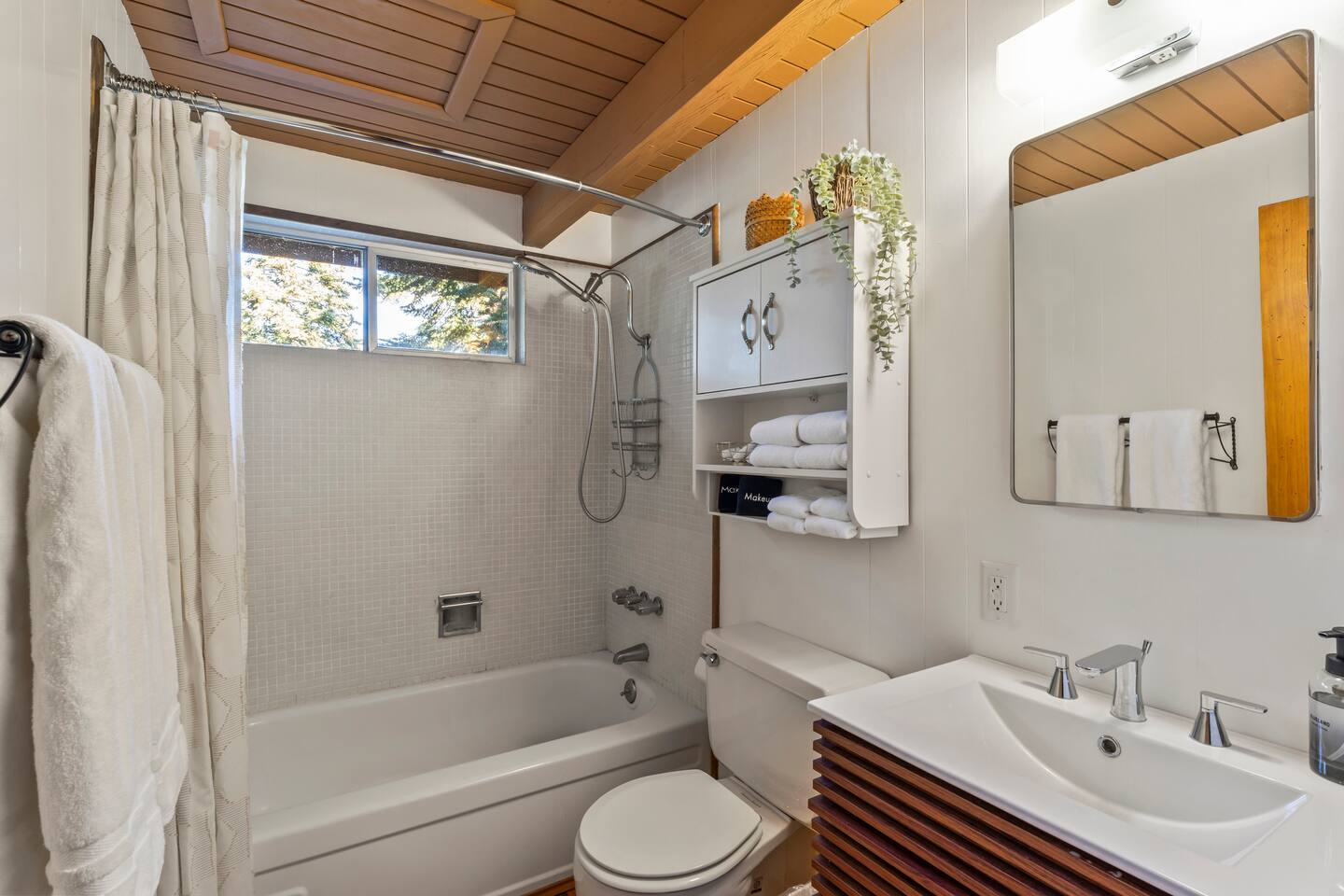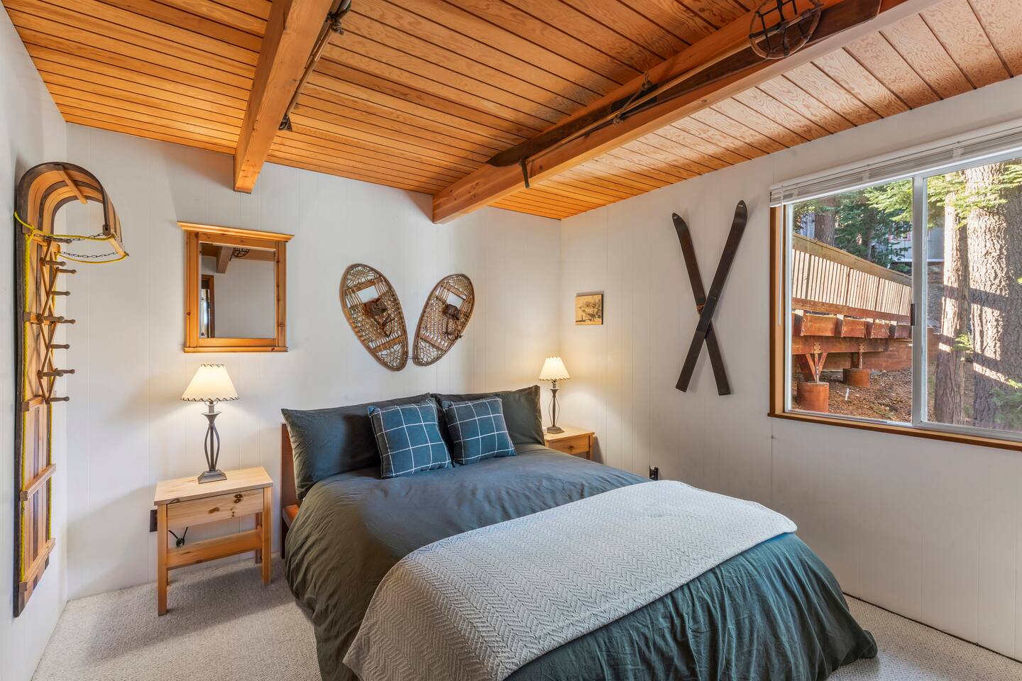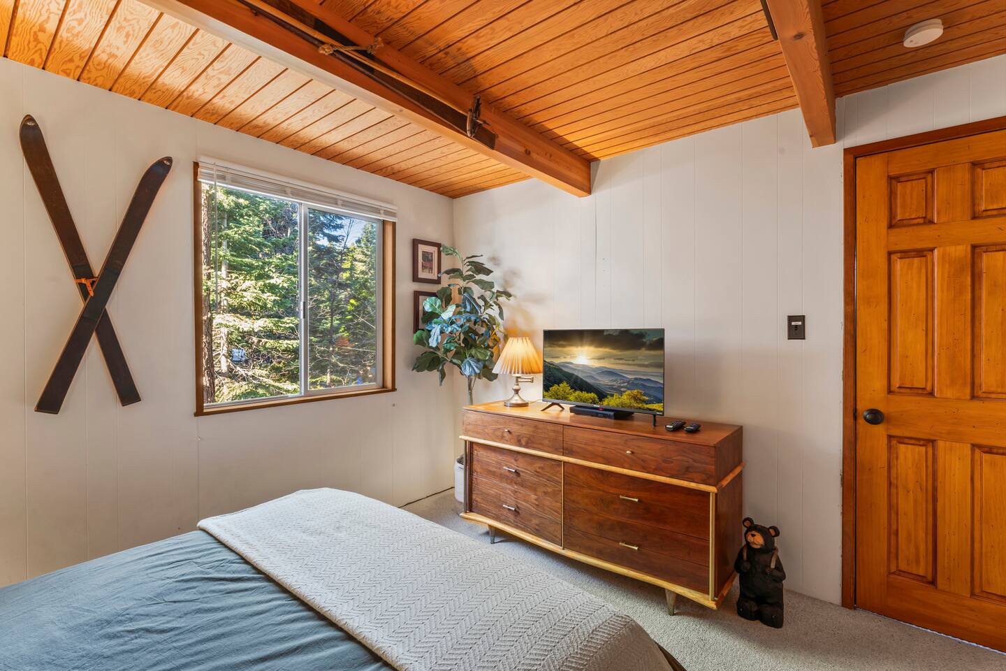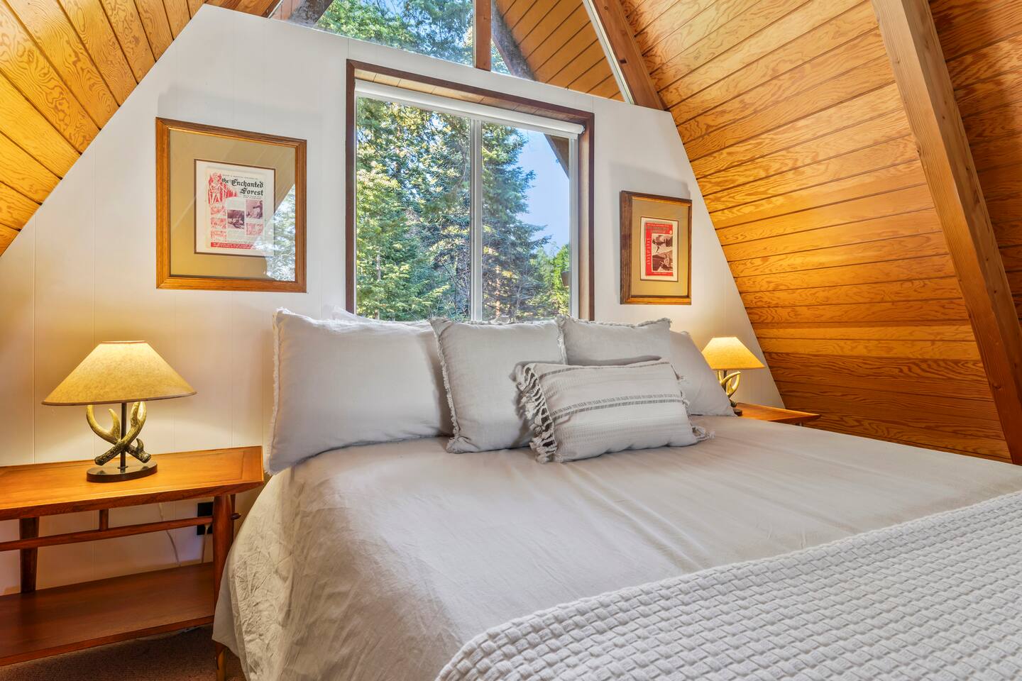LAYOUT: There are two bedrooms on the main floor, along with living space and the bathroom. The second story contains the loft bedroom. PARKING: We have two spots side by side, but at least one of the cars must be on the smaller side as it’s a tight squeeze. No street parking. BEDROOMS 1 & 2: These bedrooms are both located on the main floor, with a Queen & Full bed. LOFT BEDROOM: This loft area has a luxurious Queen bed, work desk, and reading nook with the most amazing forest views. BATHROOM: The cabin has one bathroom on the main floor which is a single vanity and shower/tub combo. KITCHEN: Our kitchen is stocked with pots, pans, a Keurig, drip coffee maker, olive oil, salt & pepper. Complimentary Keurig pods, raw sugar, & individual creamers provided. Please note: our stove/oven is a compact size & the vintage nature of it requires a lighter to start it. *We do have a wall unit for HEATING that needs to be manually lit, and we have additional space heaters in the bedrooms as well, for your convenience. PET-FRIENDLY: We allow up to 2 house-trained, well-behaved dogs as long as they are added to the reservation count. Please ensure that you bring all the supplies for them (including poop bags) and kindly clean up after them. We ask pets be kept off all furniture, but if they must come up, we ask you bring a blanket for them or use our provided pet blanket. Pets are NEVER to be left unattended at the cabin at any time, unless crated. Sorry, no cats! No washer/dryer at this cabin, but there is a local laundromat nearby. Must be 21+ years to book as per San Bernardino County regulations. *WINTER TRAVEL: Please note that during winter, you are required to carry snow tire chains with you. The mountain weather changes frequently & we want all our guests to come prepared. During snow, we clear the driveway & the entrance to the front door upon arrival. After that, we provide shovels & snow removal contacts if you need it for the duration of your stay. If you are unsure about driving in the snow, please make sure to get travel insurance.